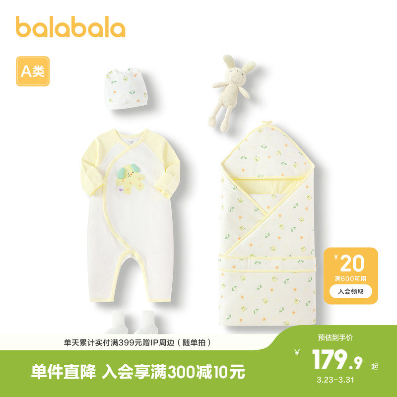 巴拉巴拉婴儿礼盒新生儿用品初生礼物宝宝礼盒满月礼五件套新纯棉