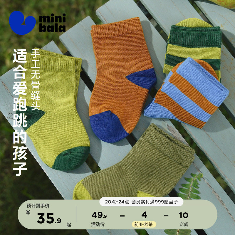 【5双装】迷你巴拉儿童袜子男女童宝宝条纹中筒袜柔软棉弹萌趣
