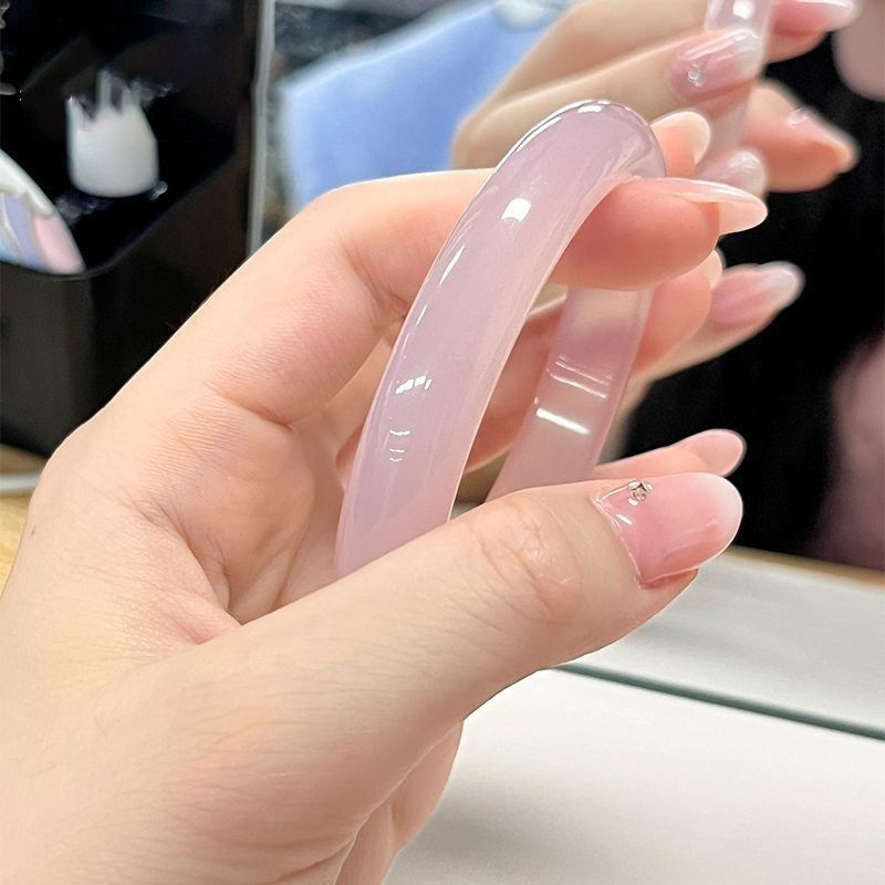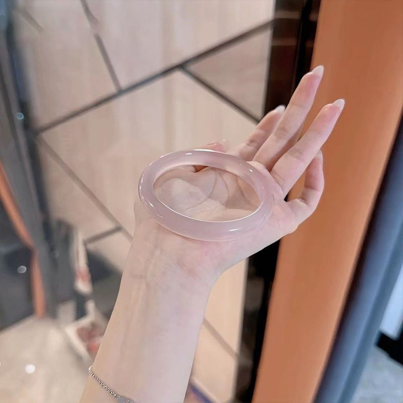 冰种藕粉猫眼效应手镯女冰透高冰玻璃猫眼女生镯子百搭气质冷淡风