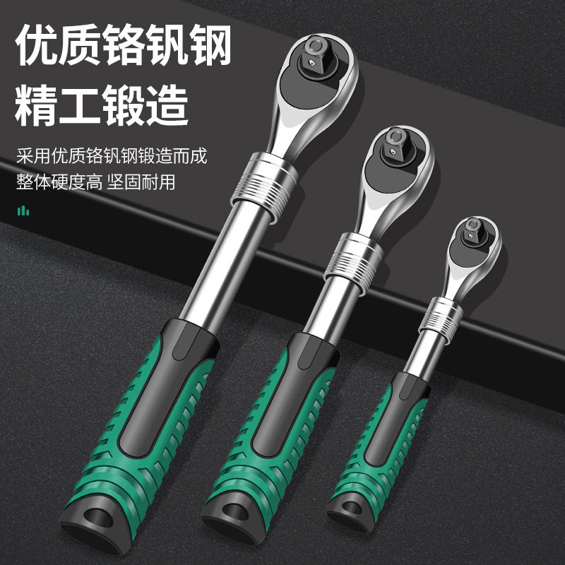 大飞中飞小飞棘轮伸缩扳手汽修工具双向套筒快速72齿轮珍珠镍