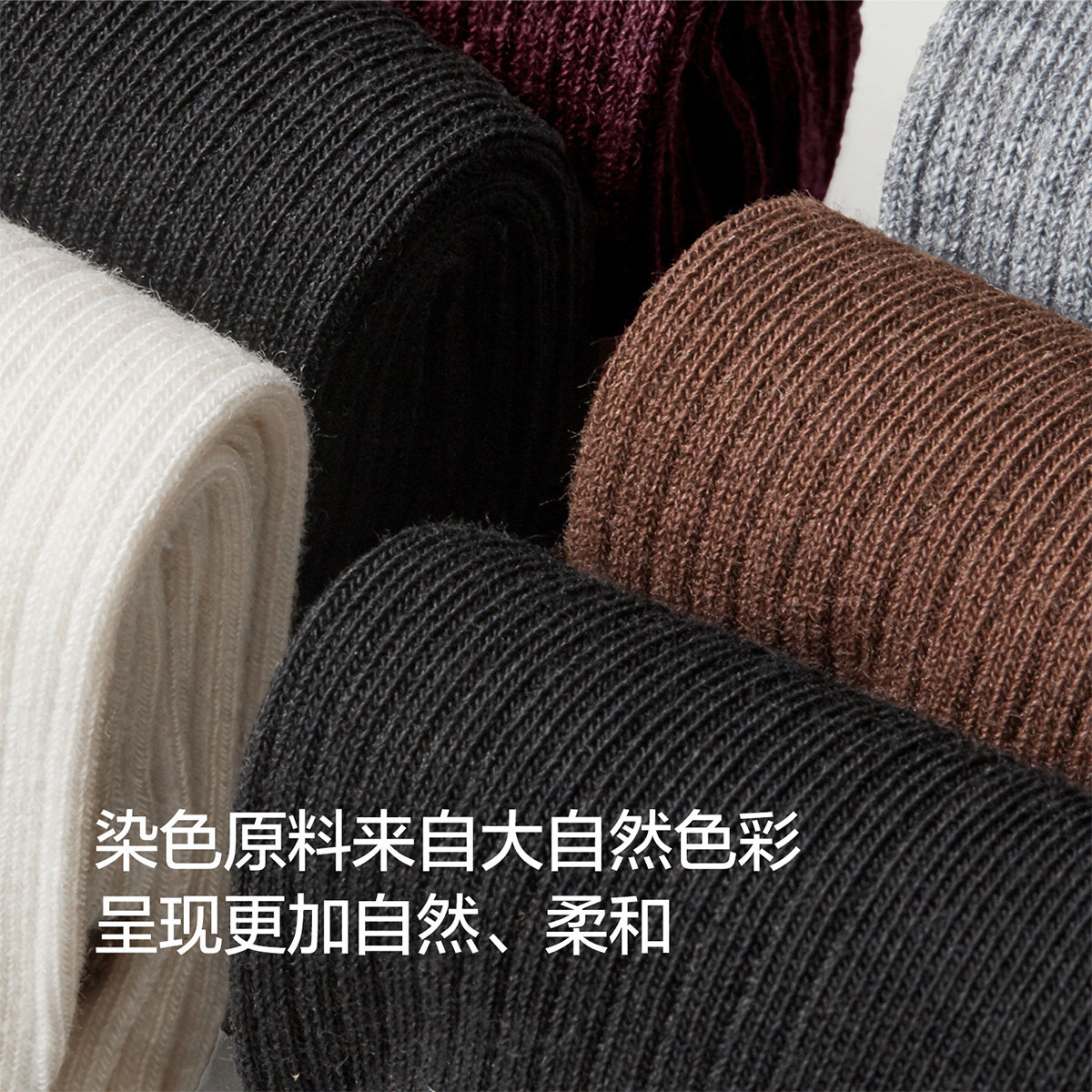 鹿人女袜秋冬款纯棉高筒袜舒适简约撞色新疆长绒棉条纹长袜女3129