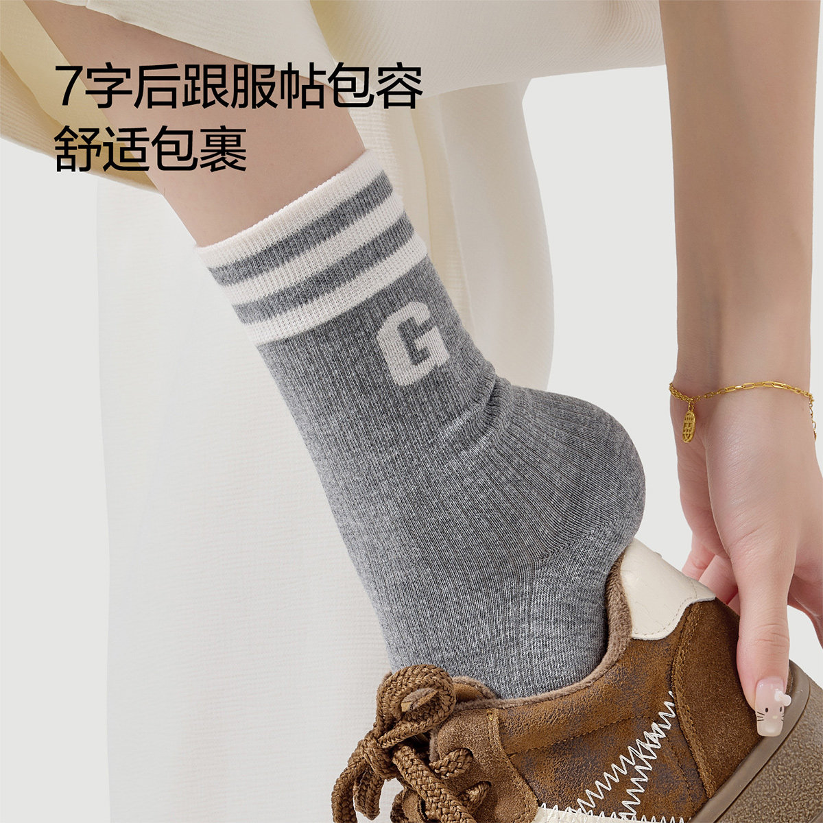 意尔康女袜3双装女式长筒袜运动休闲高筒女士简约字母袜子跑步