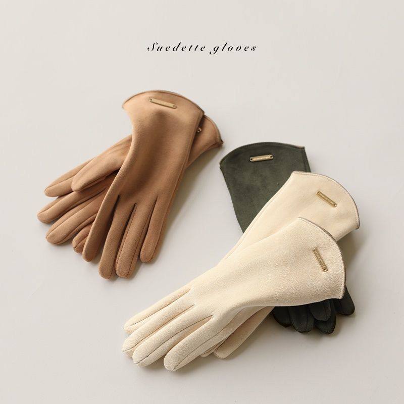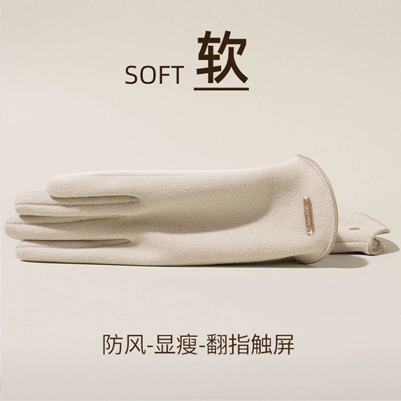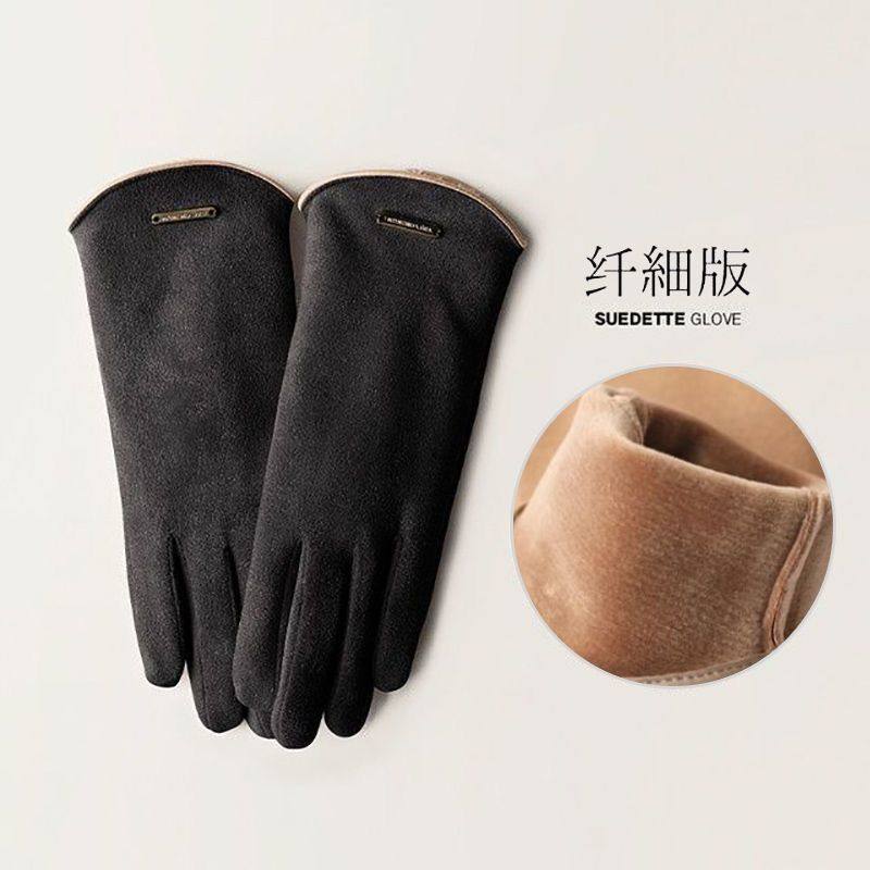 2025麂皮绒手套女士冬季骑车防风加绒防寒保暖开车指触屏黑色厚款