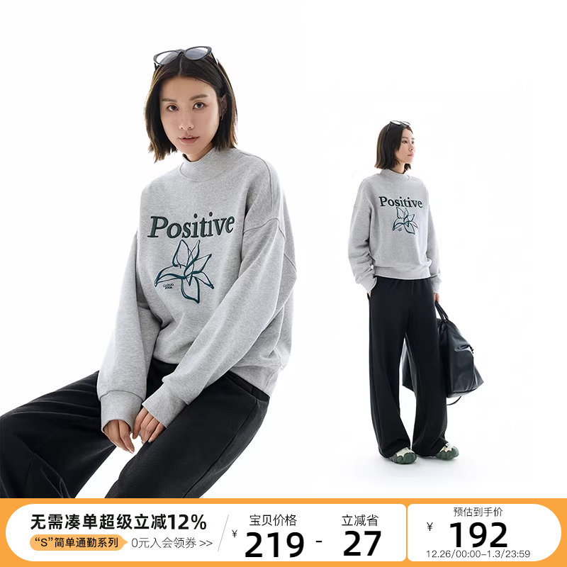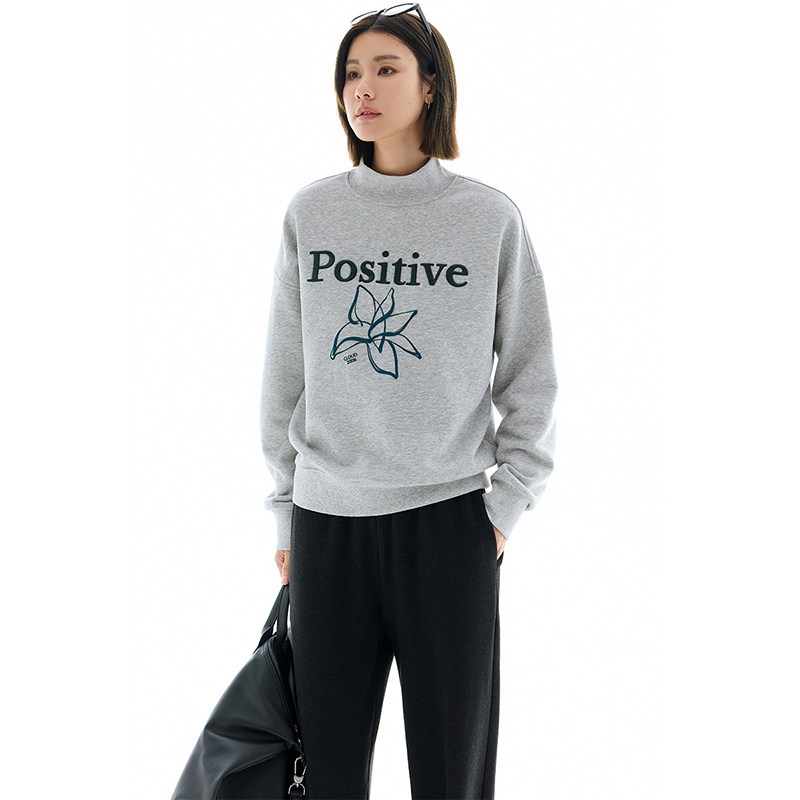 森马卫衣女设计感图案oversize发热抑菌冬绣花抓绒上衣慵懒学院风