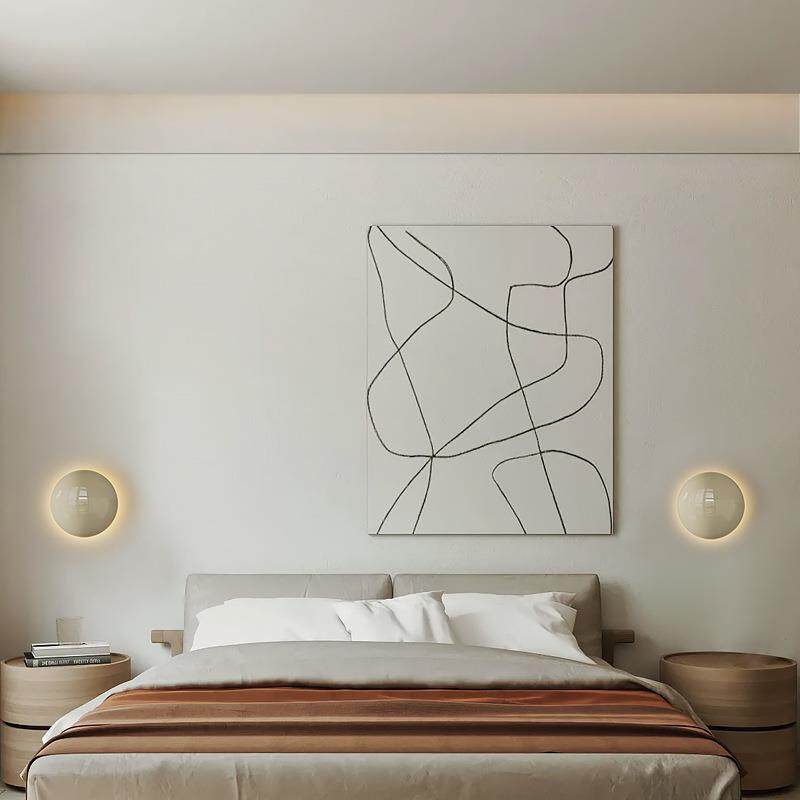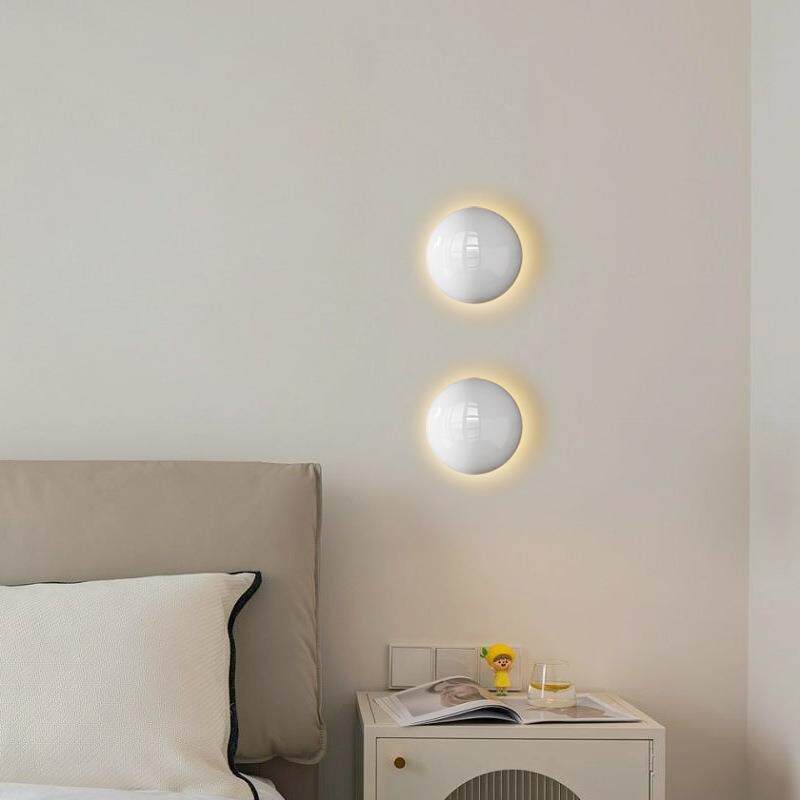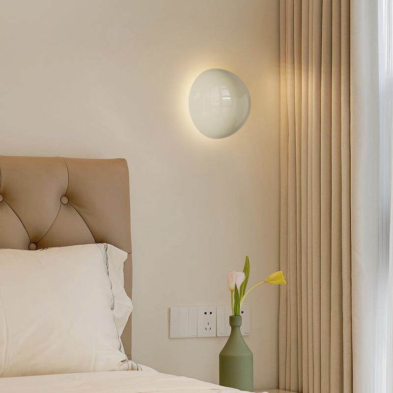 奶油风极简壁灯主卧室床头圆形氛围灯中古包豪斯客厅书房背景墙灯