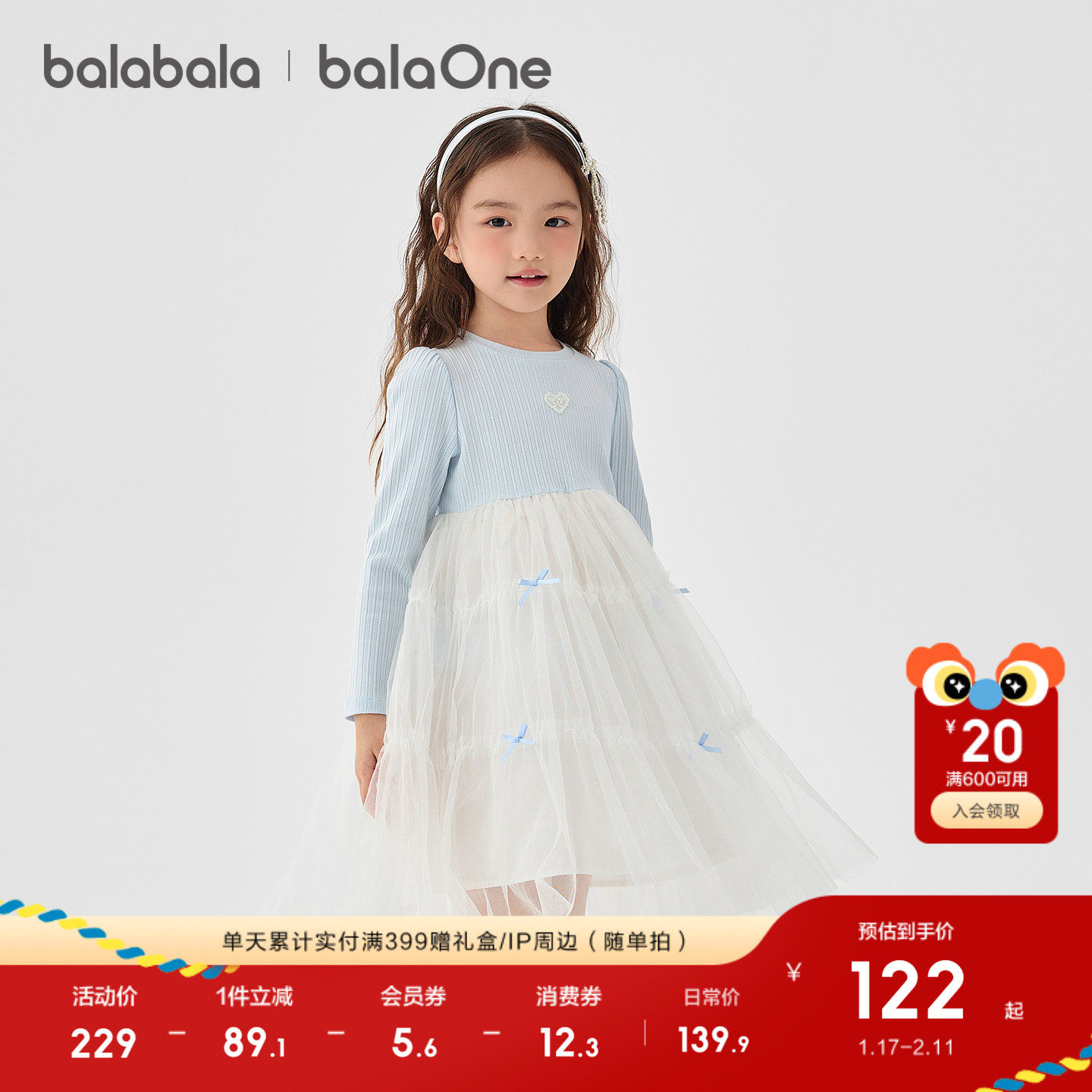 巴拉巴拉balaOne童装女公主裙2025秋冬新款儿童连衣裙针织网纱裙