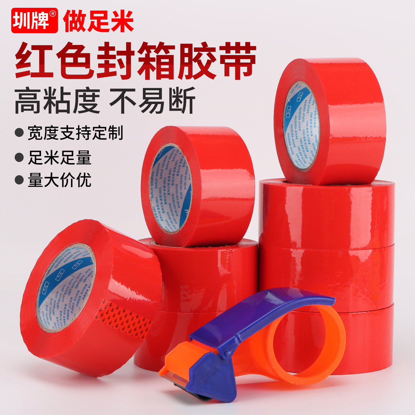 圳牌 红色封箱胶带彩色胶纸透明白橙粉黑黄蓝绿紫棕色胶带加厚快递打包封口纸箱胶带米黄色大卷封箱胶带批发