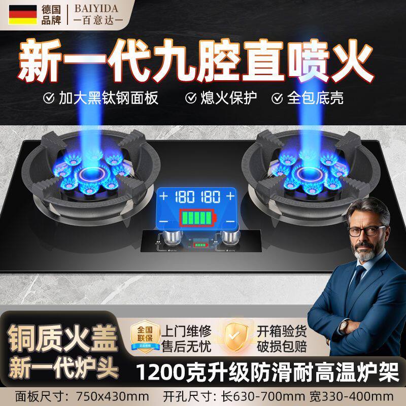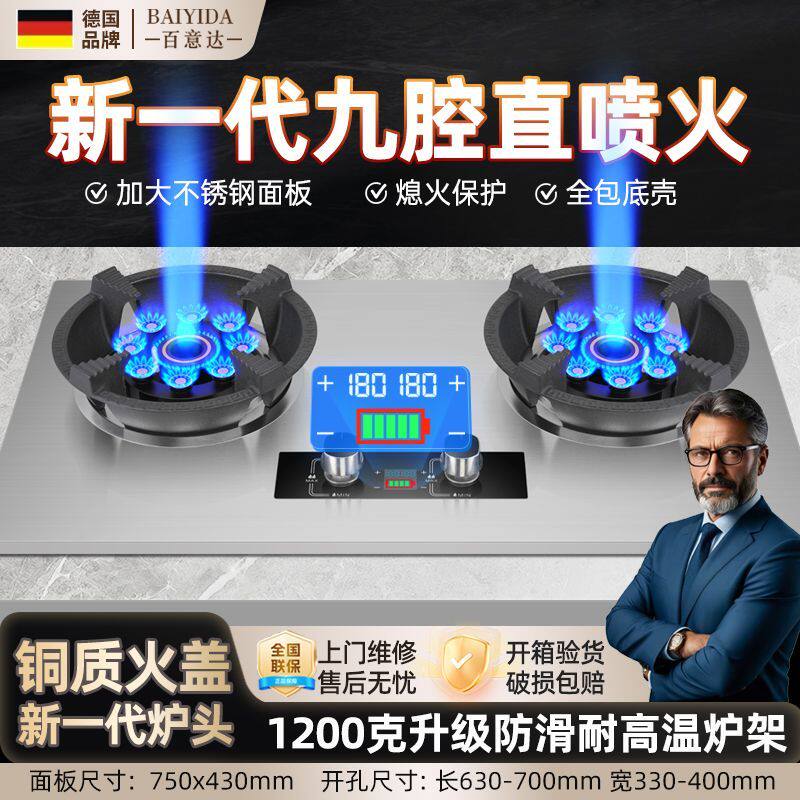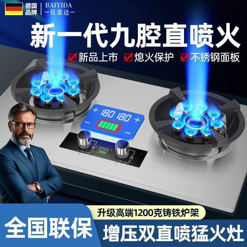 德国正品煤气灶家用双灶纯铜直喷猛火灶具液化气灶天然气燃气灶
