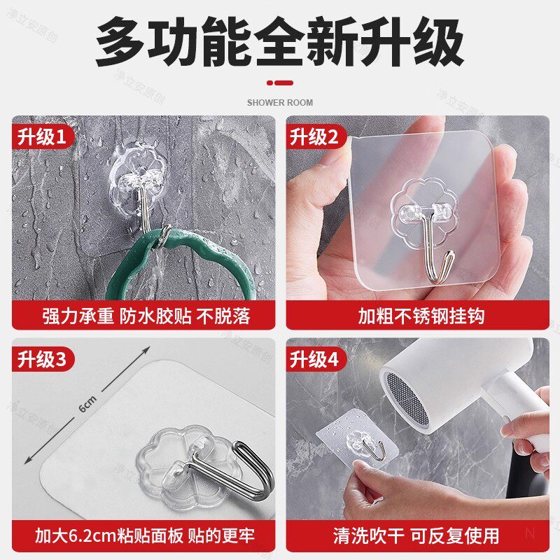 挂钩粘钩强力粘胶墙壁贴墙上承重无痕挂勾贴钩透明免打孔粘贴钩子