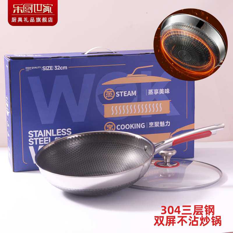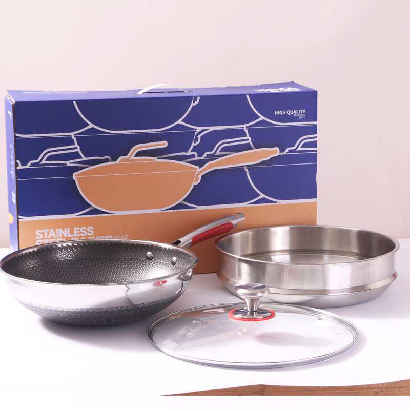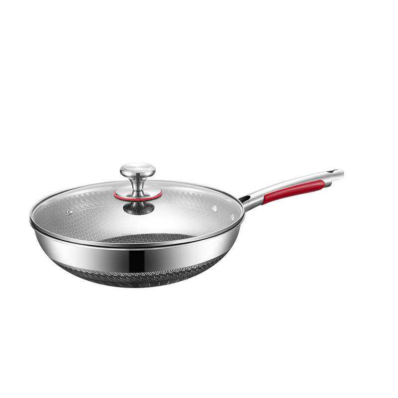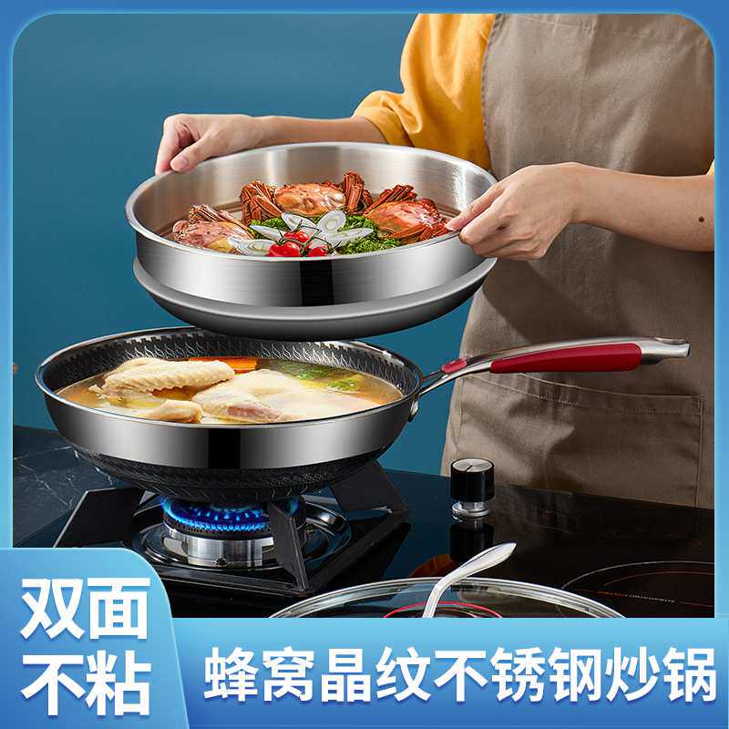 304双面屏不锈钢蜂窝炒锅 32cm不沾炒鼎无涂层平底锅电磁炉通用