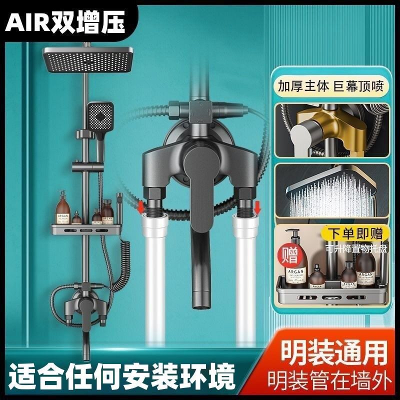 明装淋浴花洒套装家用明管太阳能卫浴室增压洗澡沐浴器混水阀冷热