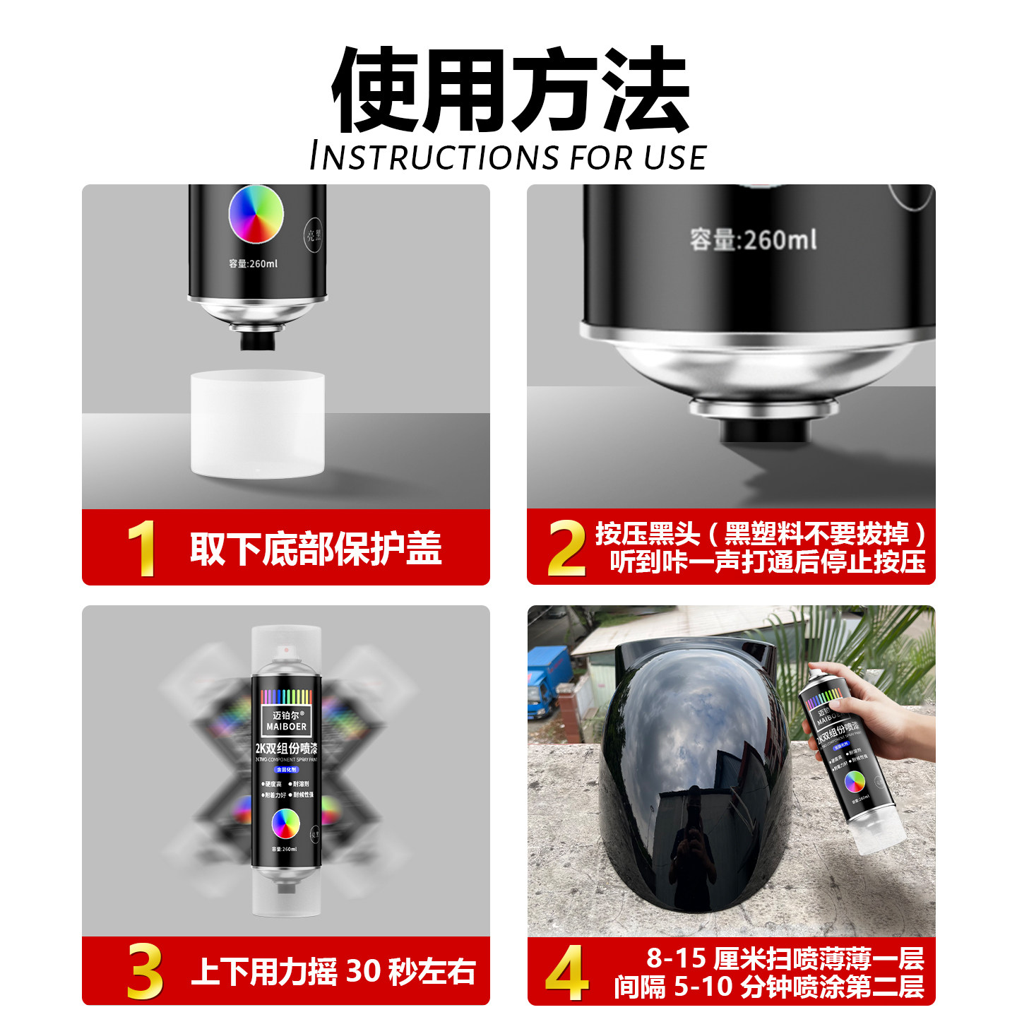 2K烤漆自喷漆双组份高硬度汽车清漆亮黑色哑黑油漆金属手摇喷漆罐