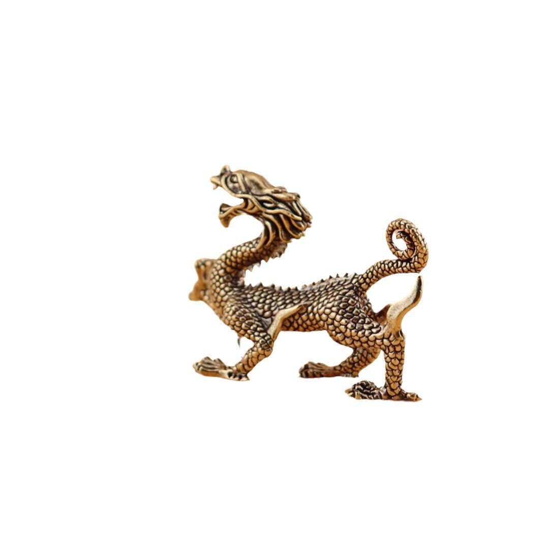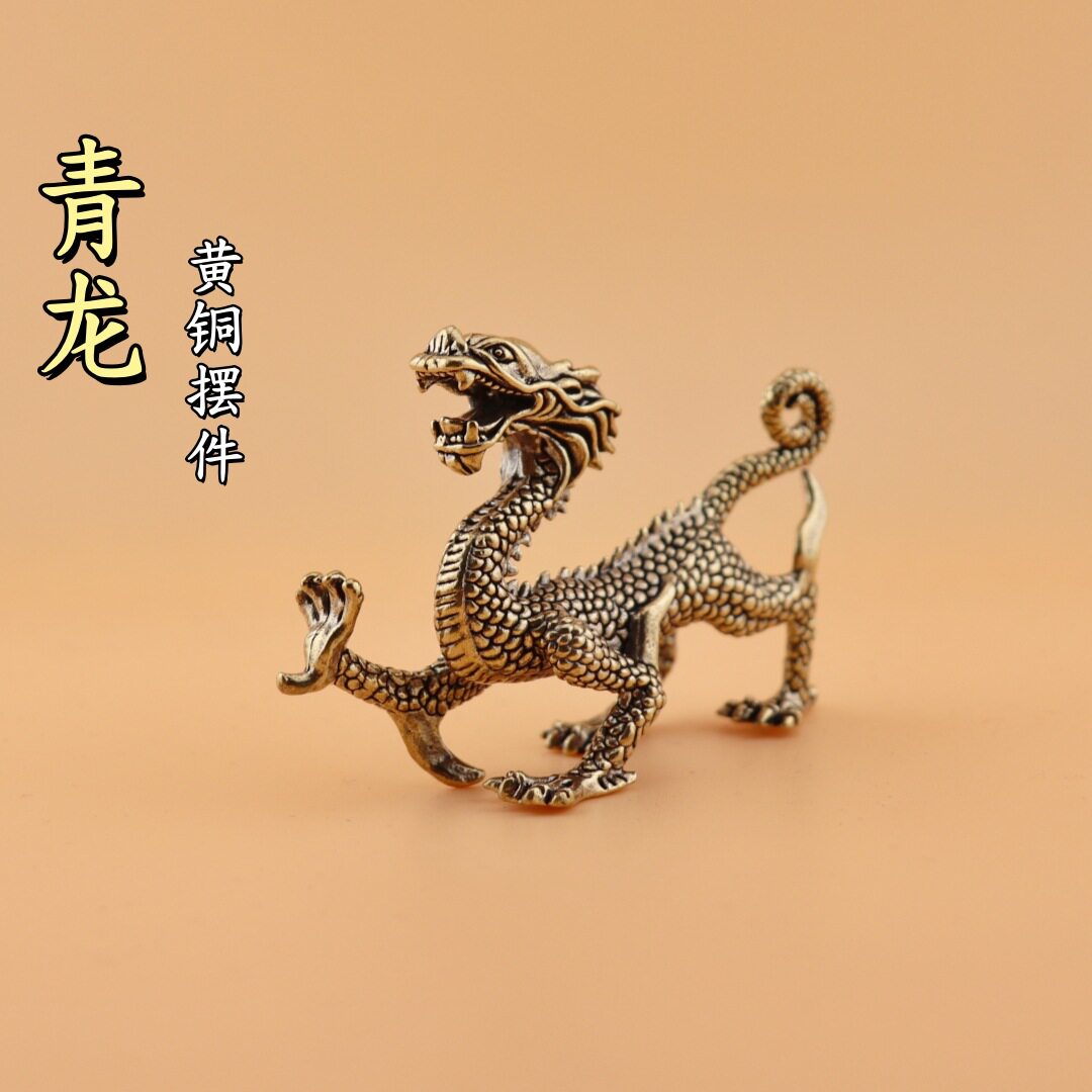 纯黄铜四大神兽青龙复古实心老物件居家装饰办公室桌面茶宠小摆件