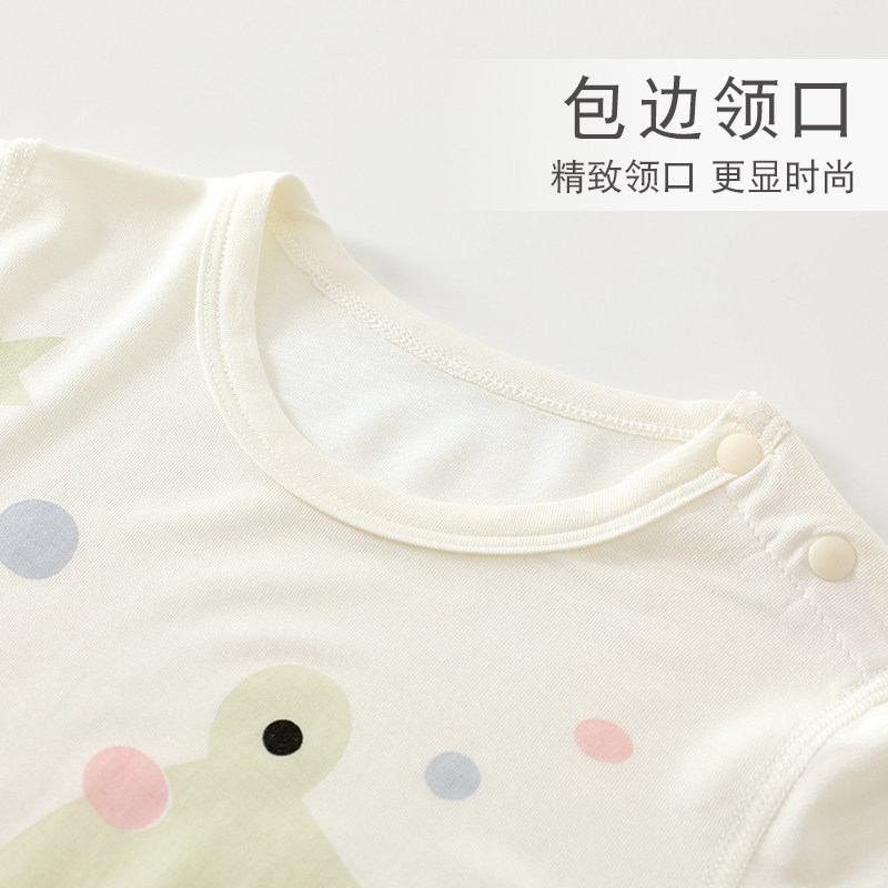 婧麒婴儿连体衣夏季薄款长袖无骨空调服宝宝睡衣爬服新生婴儿衣服