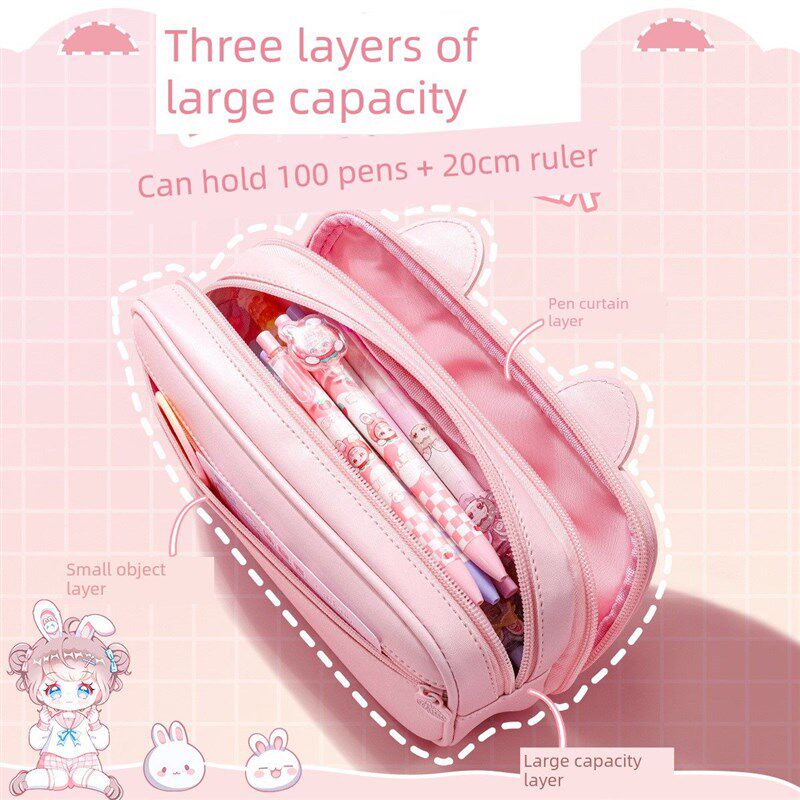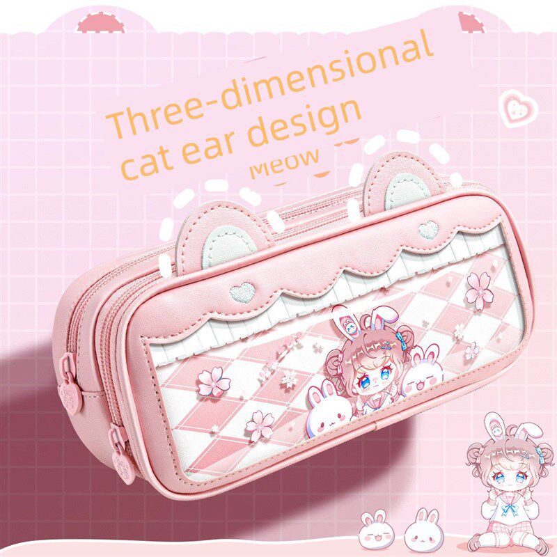 优选折耳姐妹猫耳笔袋2025新款大容量笔袋立体初中女生文具盒女生