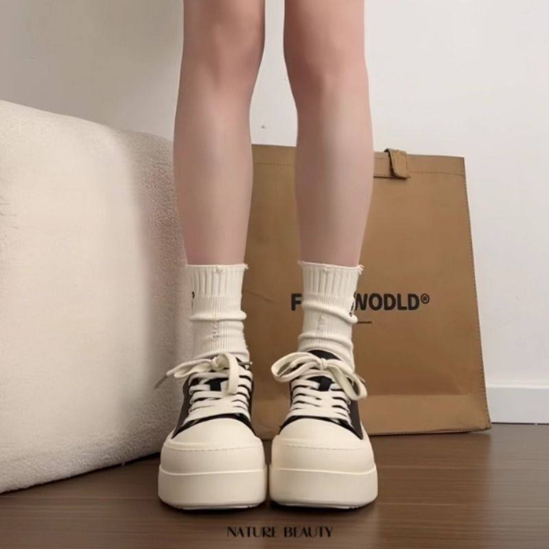 米白色原创小众厚底面包鞋女百搭运动休闲板鞋学生小白鞋2025新款