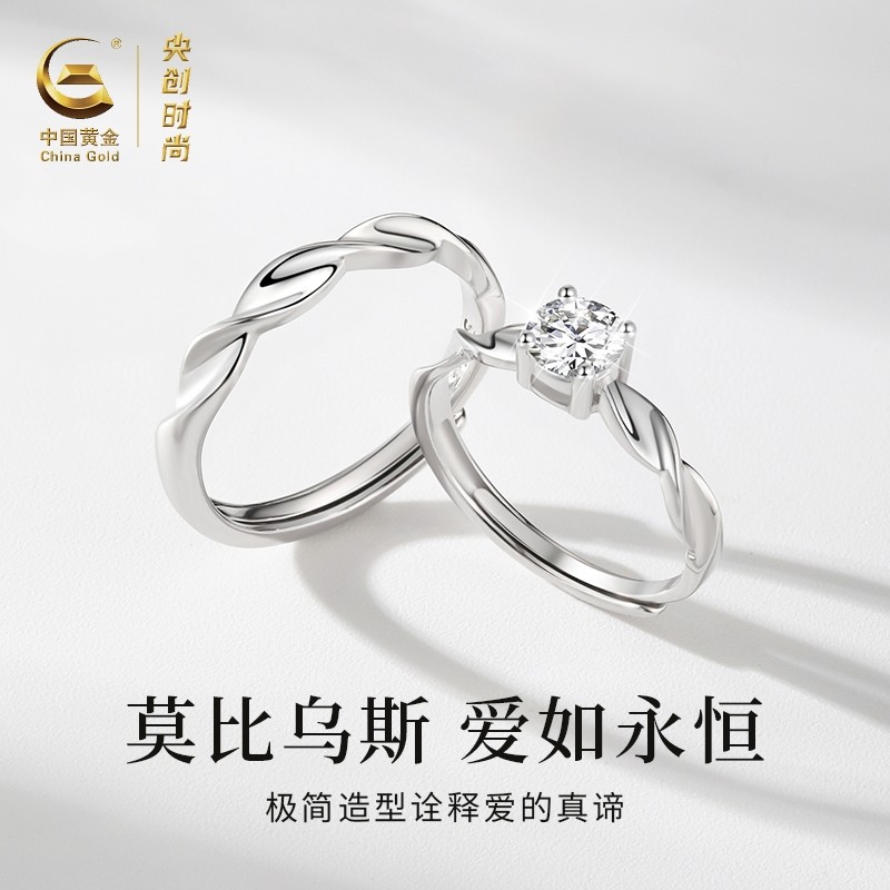 央创莫比乌斯情侣对戒纯银情侣款戒指新款爆款送女友S925