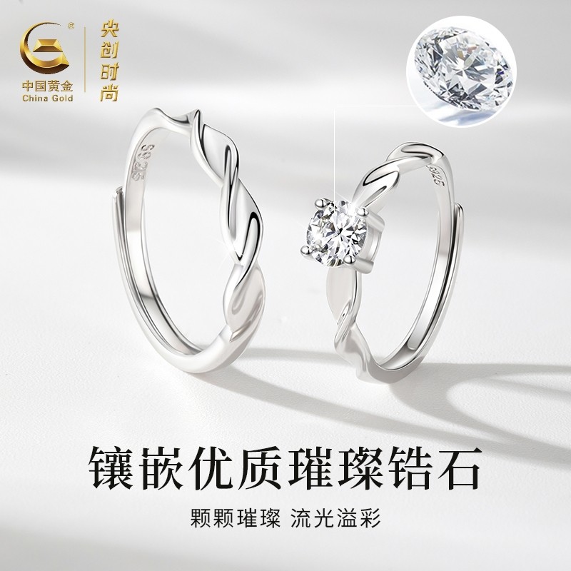周大生真爱不渝情侣对戒三戒一生纯银一对婚戒指生日礼物送女友