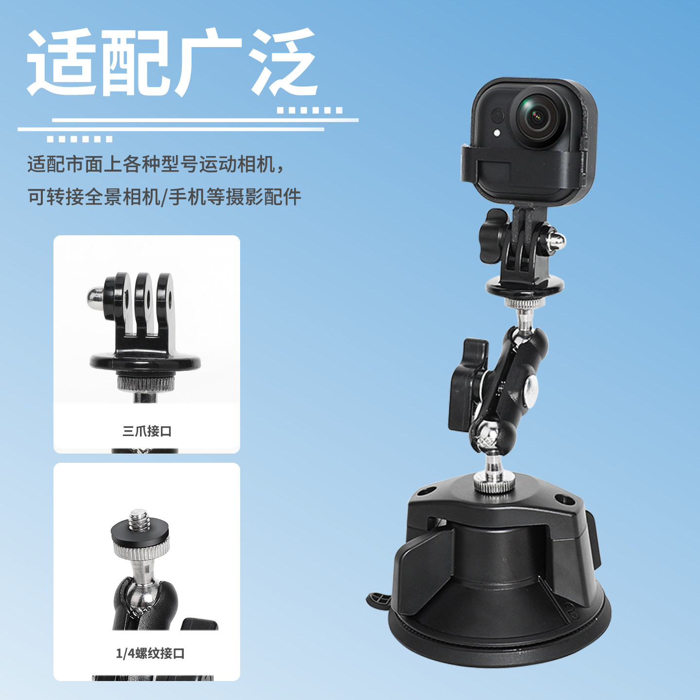 LRBH适用大疆Action4汽车支架Insta360/GoPro12运动相机车载支架配件吸盘款遮阳板后视镜固定专用
