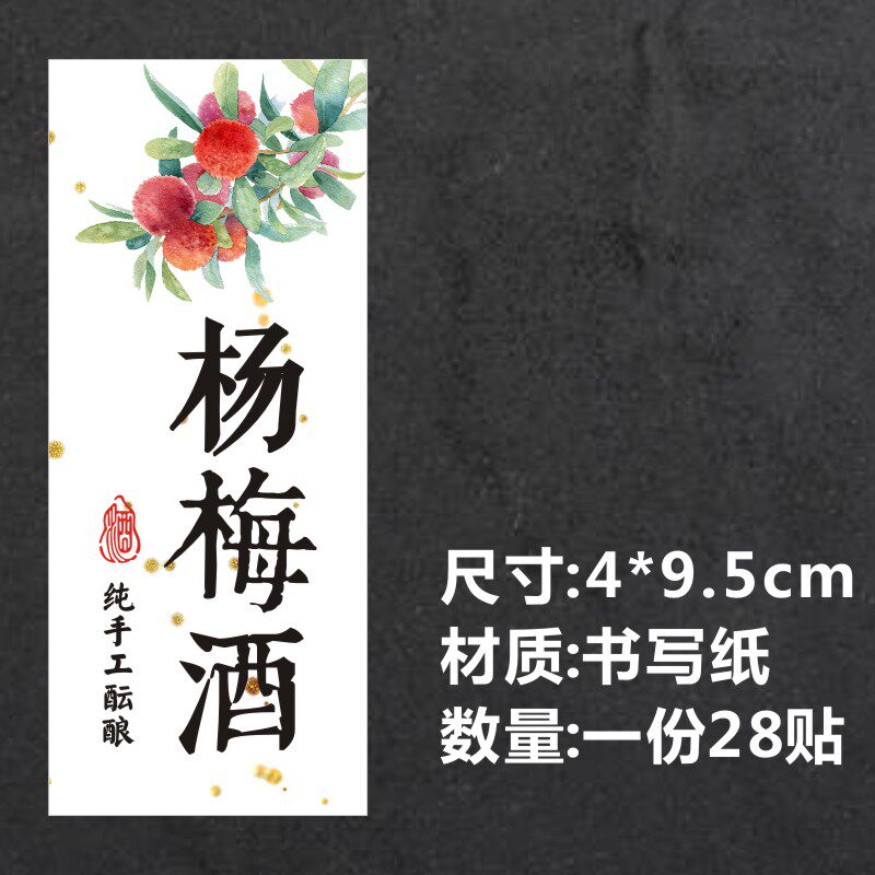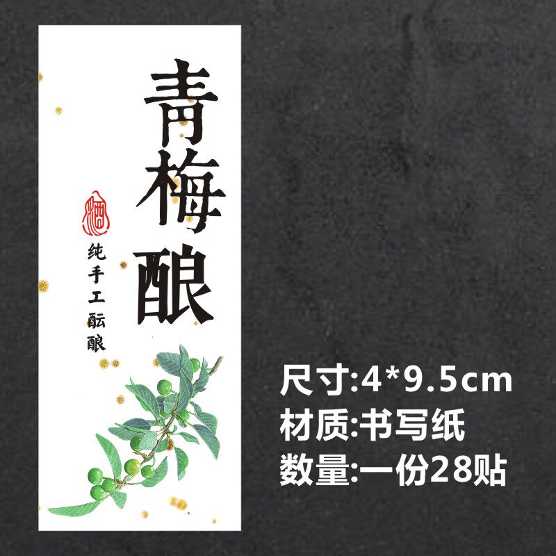 诗束 青梅酒手写标签包装盒封口贴瓶标贴长条不干胶封签可定做印刷4
