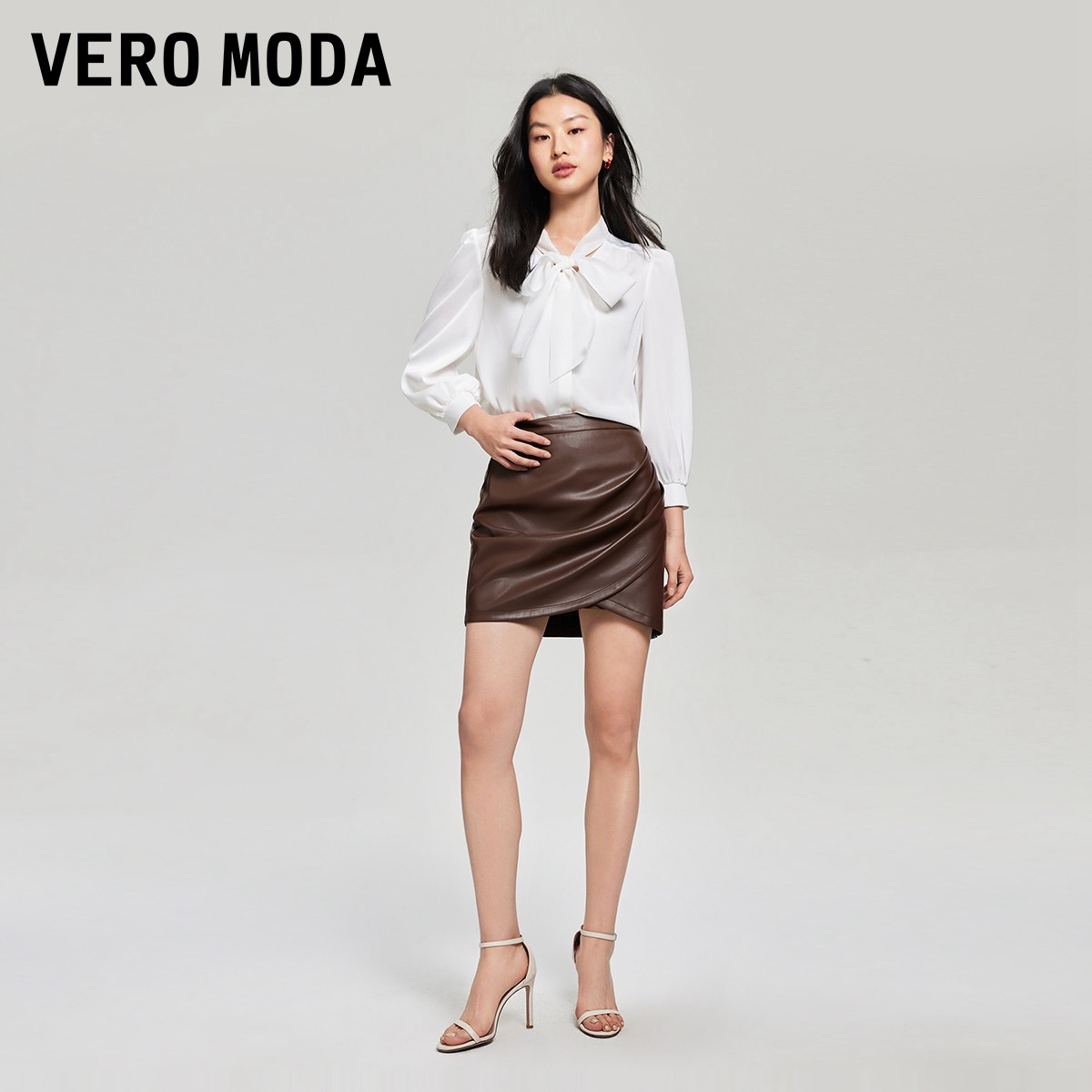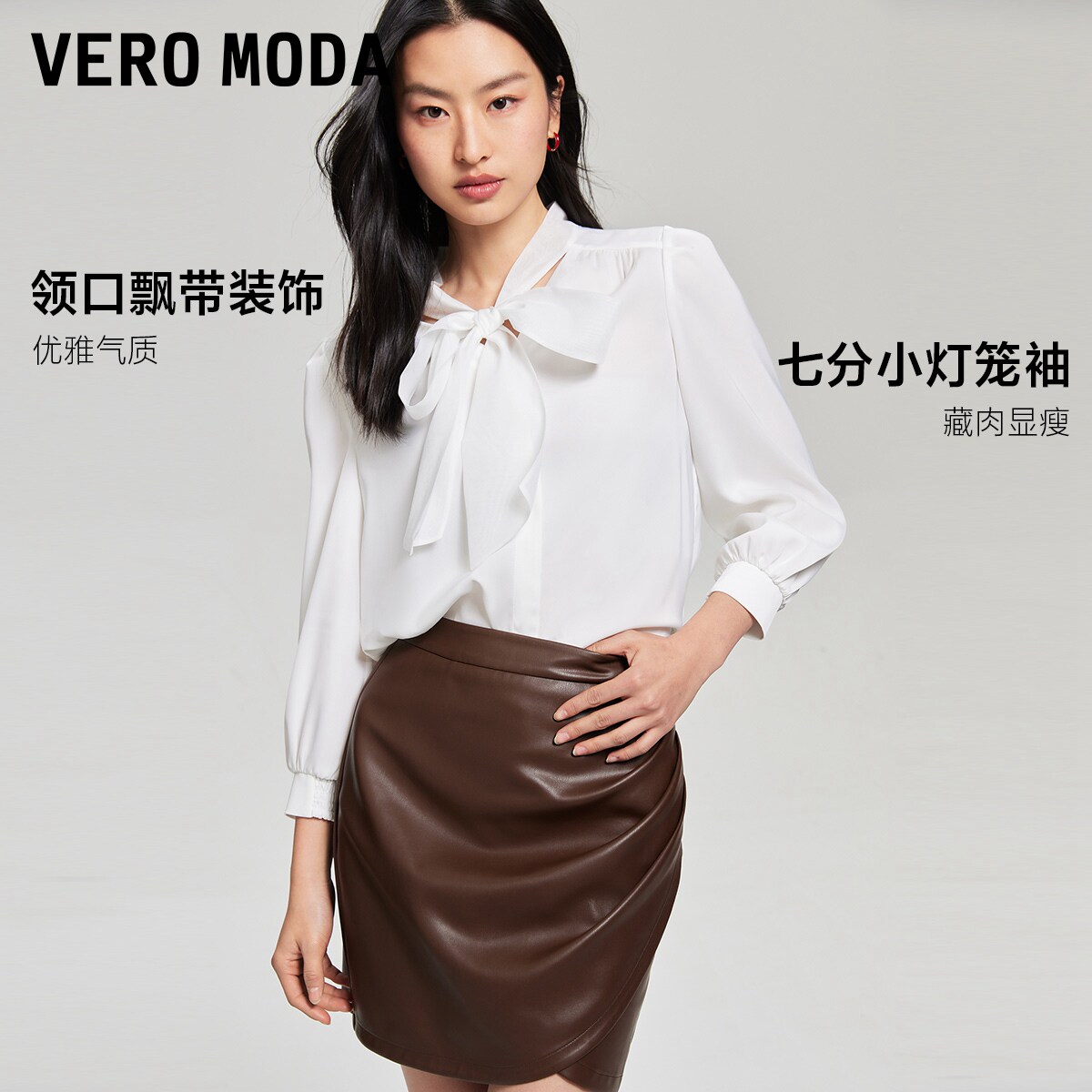 Vero Moda衬衫2025秋季新款v领飘带七分灯笼袖气质通勤325331005