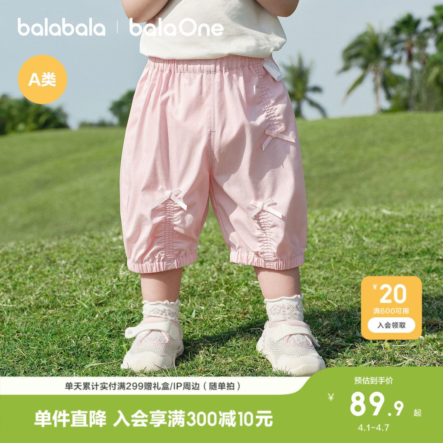 巴拉巴拉宝宝裤子婴儿七分裤儿童休闲裤女童2026新款夏花苞蝴蝶结