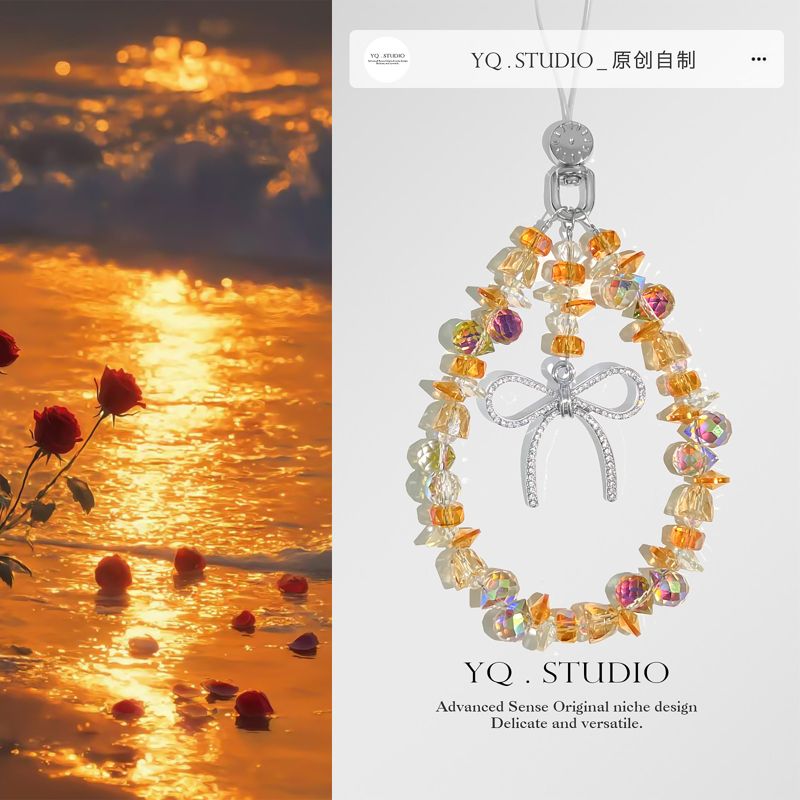 YQ.STUDIO|原创轻奢blingbling人造水晶手腕挂绳蝴蝶结ccd手机链