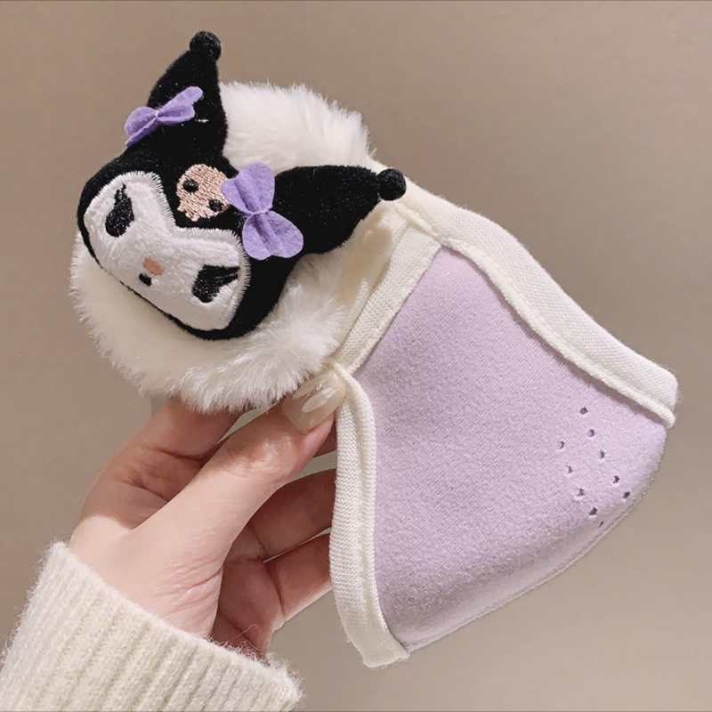 儿童口罩5到12岁库洛米耳罩一体防寒护耳加绒厚面罩耳包防风新款