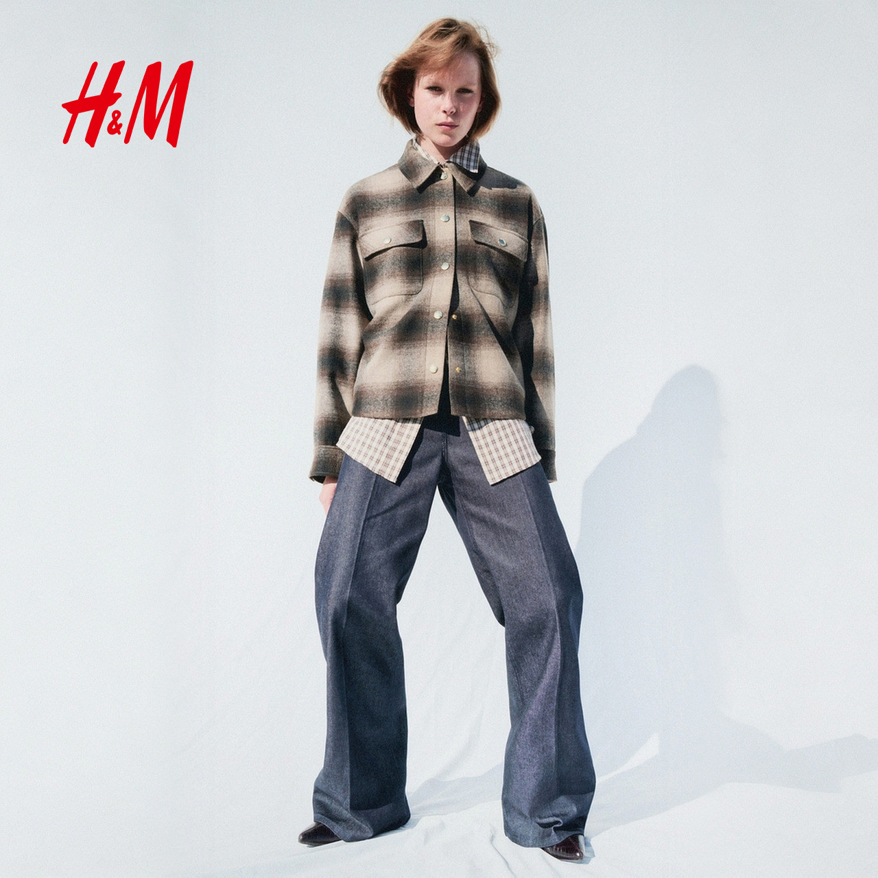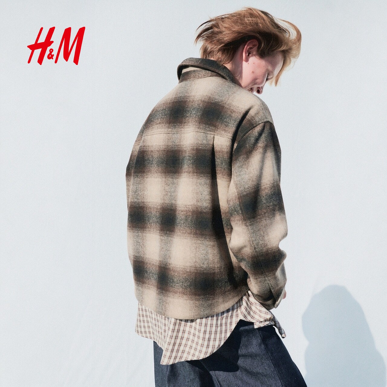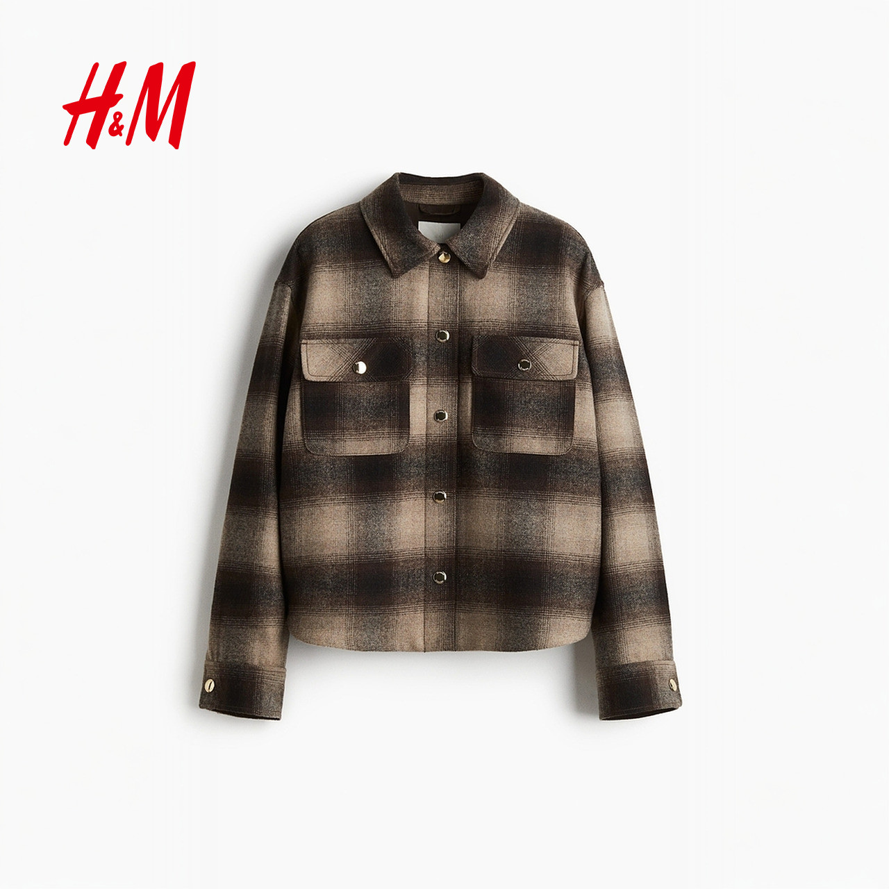 HM女装短外套春季法式格纹大廓形格子衬衣式夹克 1284765
