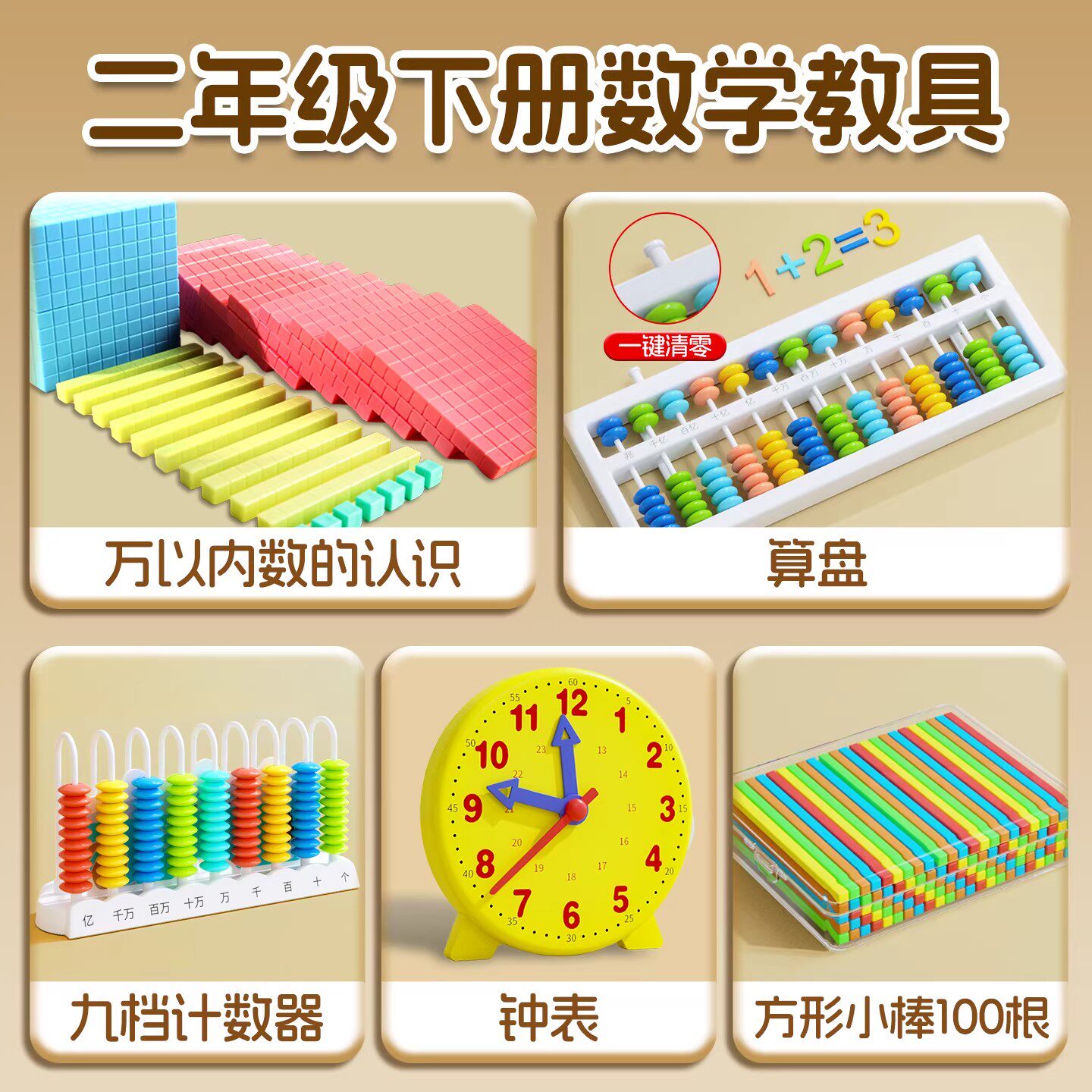 二年级数学教具下册必备学习用品人教版算盘天平秤学具套装人教版