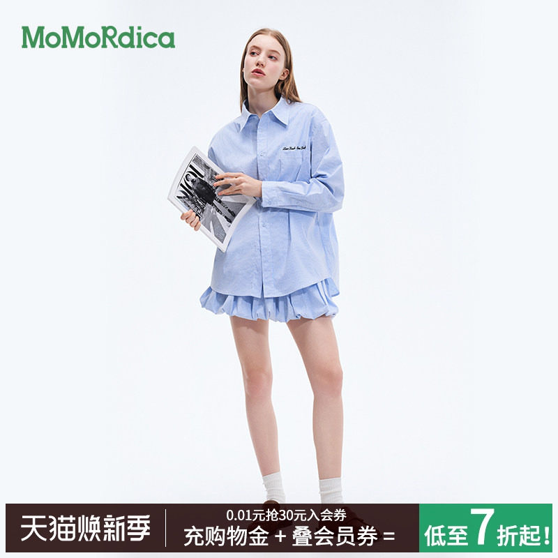 森马大力水手联名中袖衬衫女中长款设计感夏宽松满印衬衣炸街甜酷