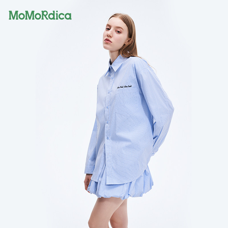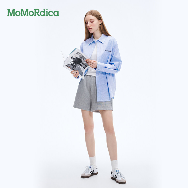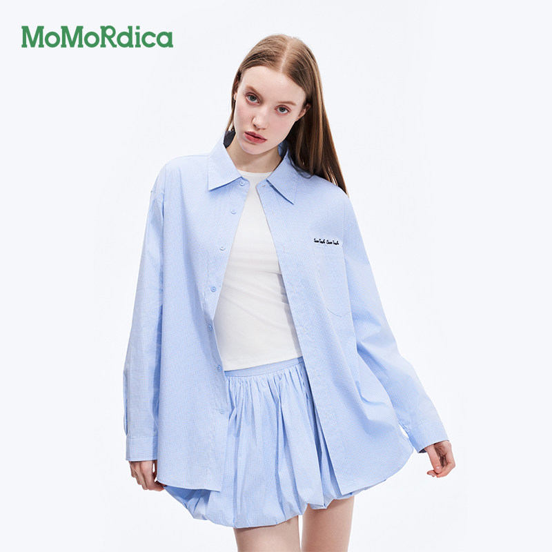 Momordica 新款2025夏季格纹翻领衬衣女衬衫套装两件套半身裙女