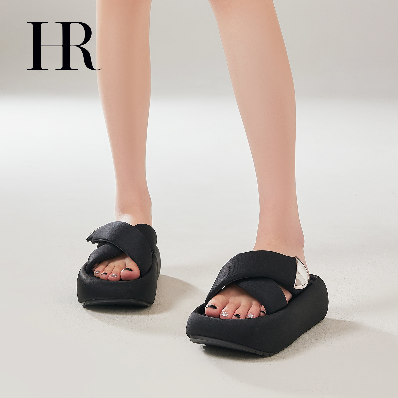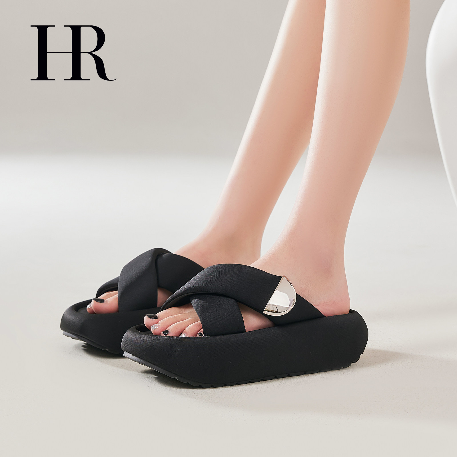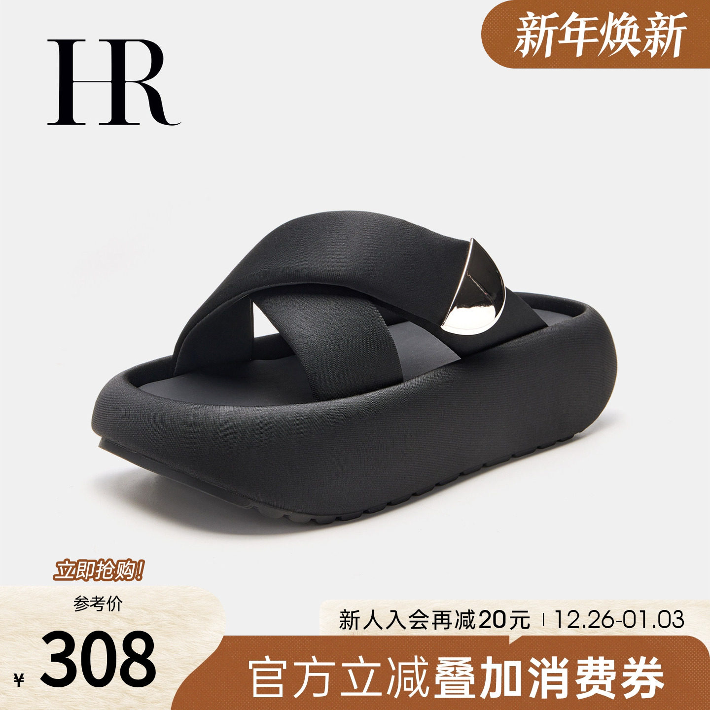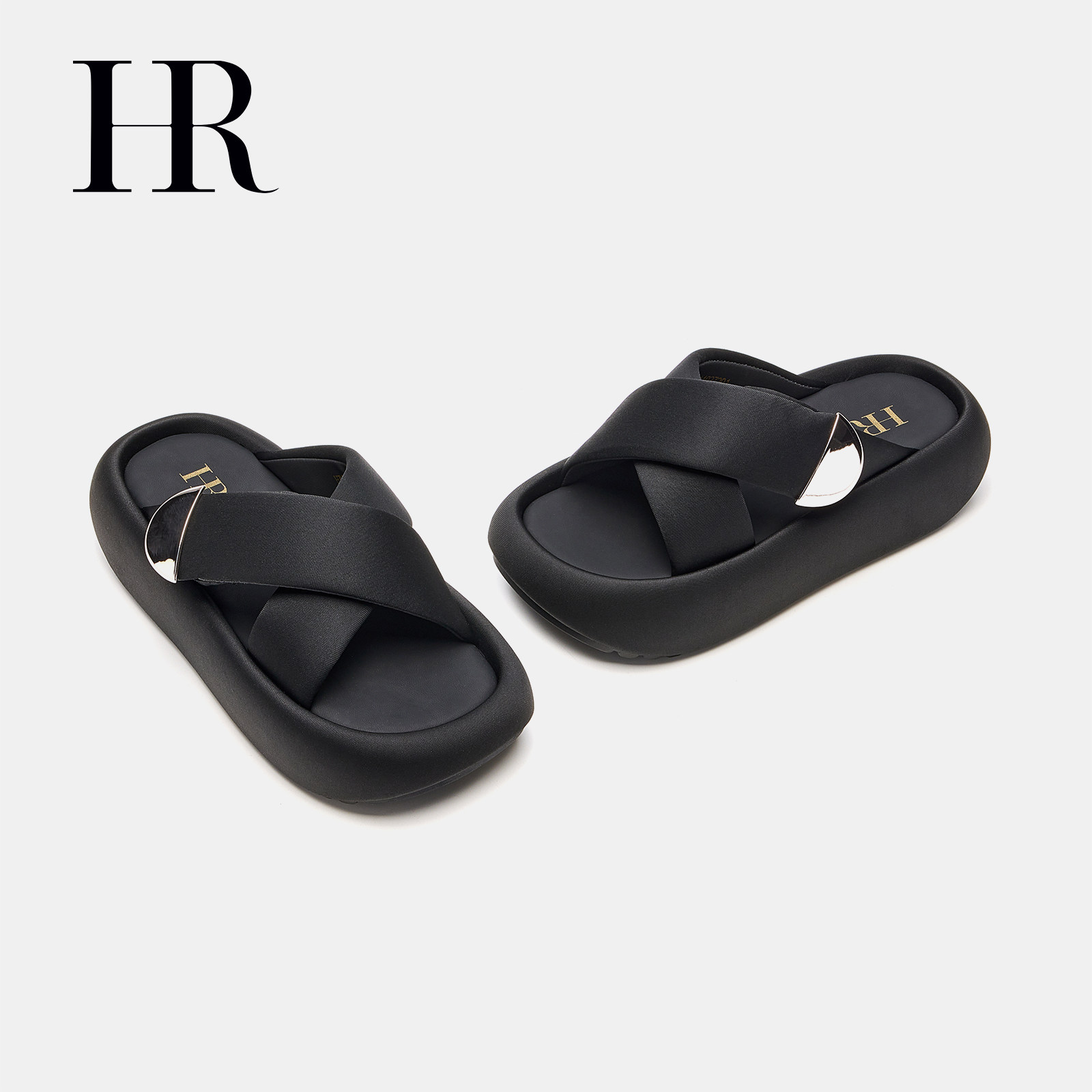 HR赫莲娜女鞋子2025年夏季新款一字拖鞋厚底外穿防滑沙滩交叉拖鞋
