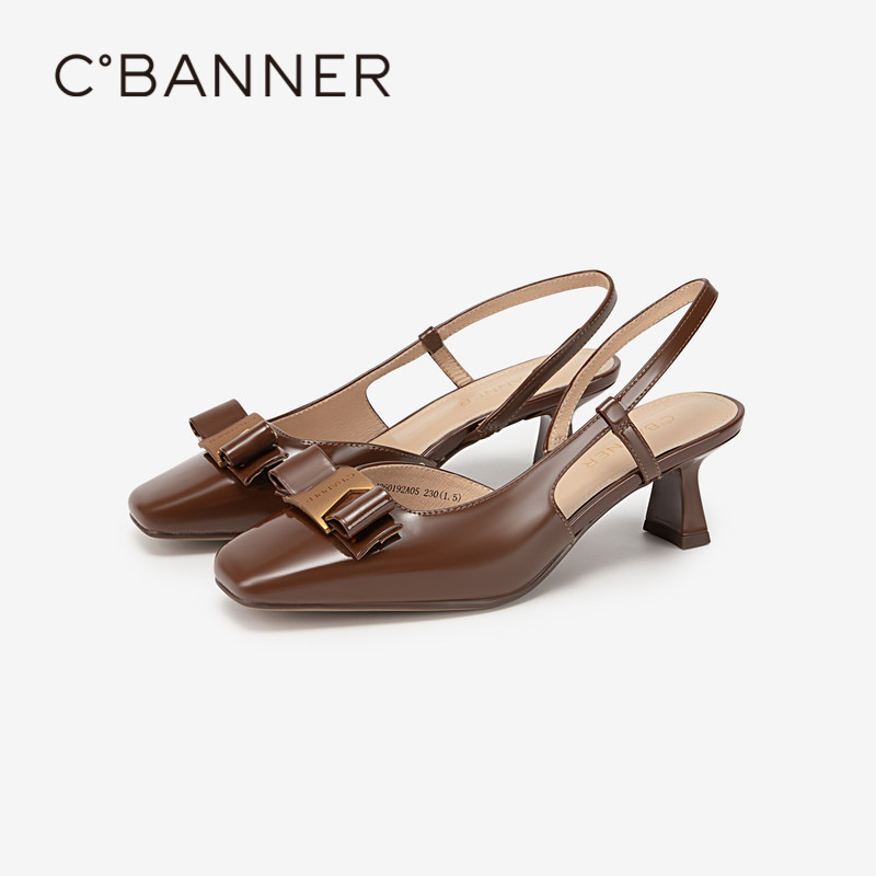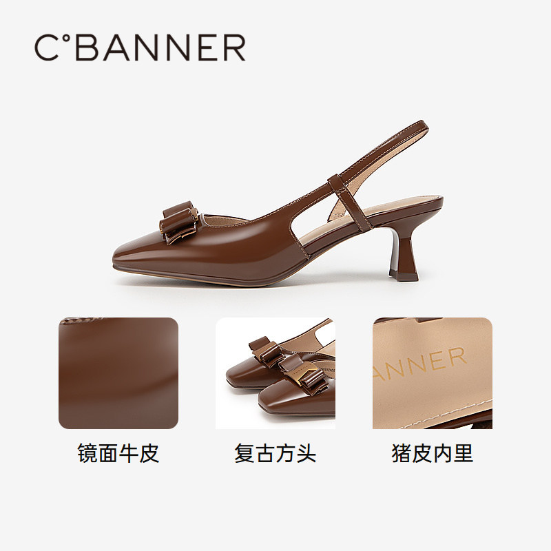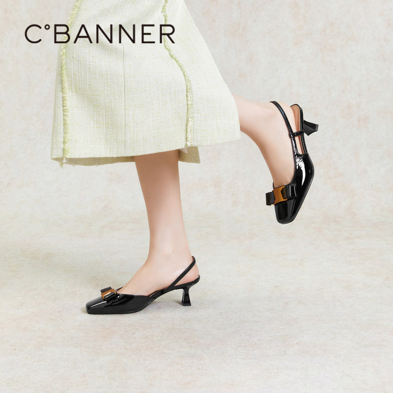 Cihi设计长期主义尖头细跟设计师单品亮面浅口包头后空高跟凉鞋