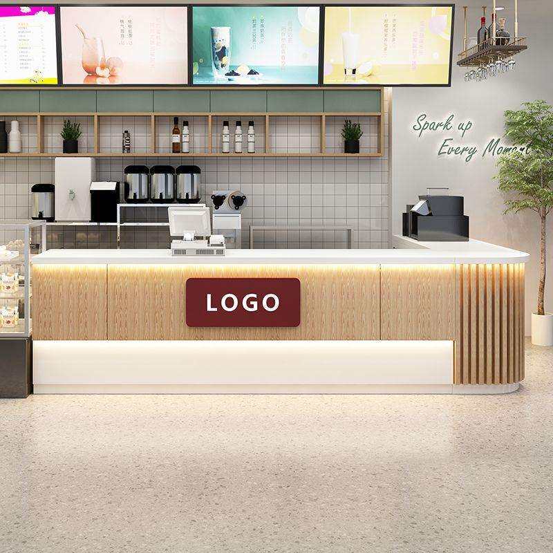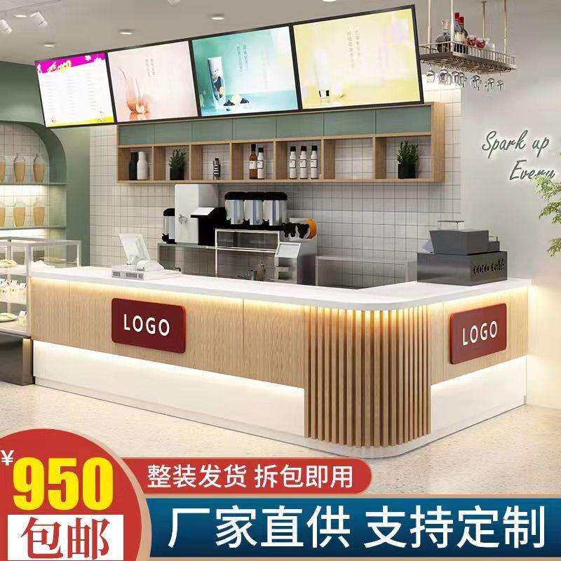 奶茶店吧台收银台吧台柜一体简约现代转角大理石咖啡店前台柜台