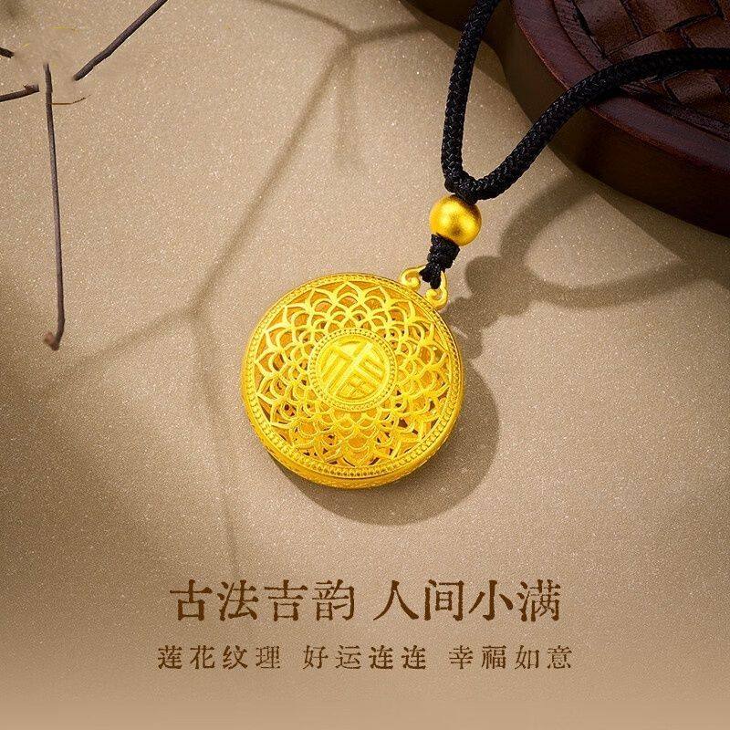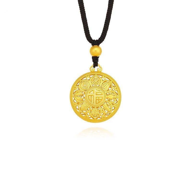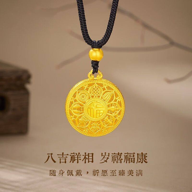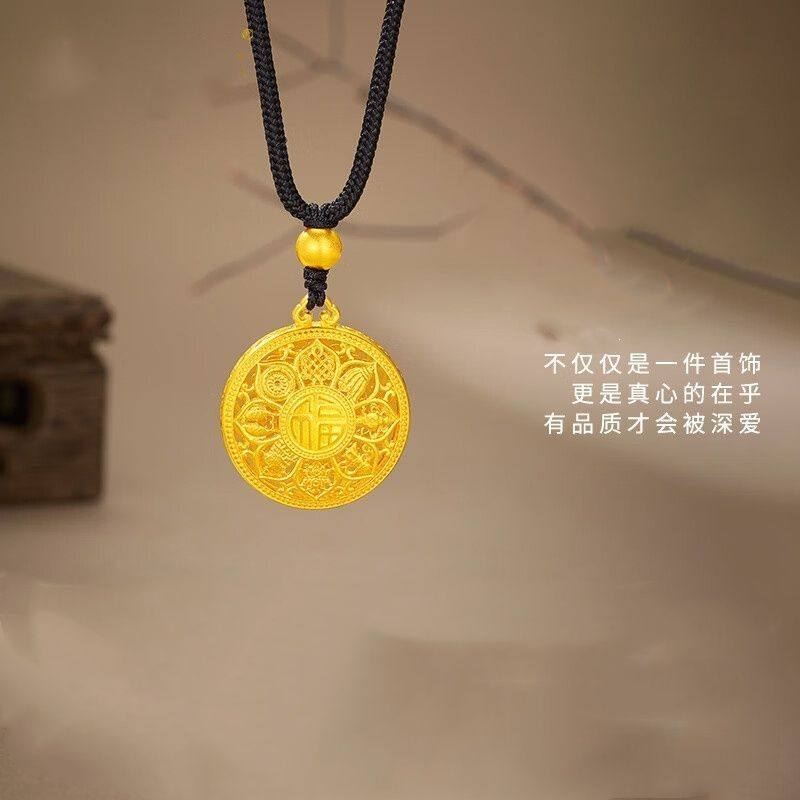 越南沙金八宝罗盘项链古法传承吊坠黄金色编绳福牌毛衣链金珠莲花