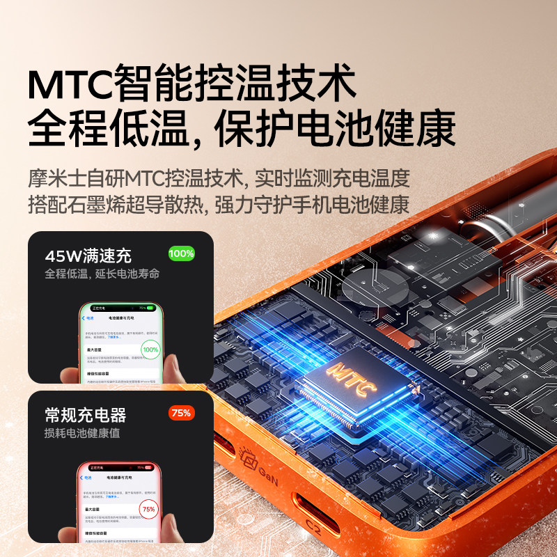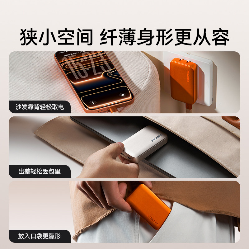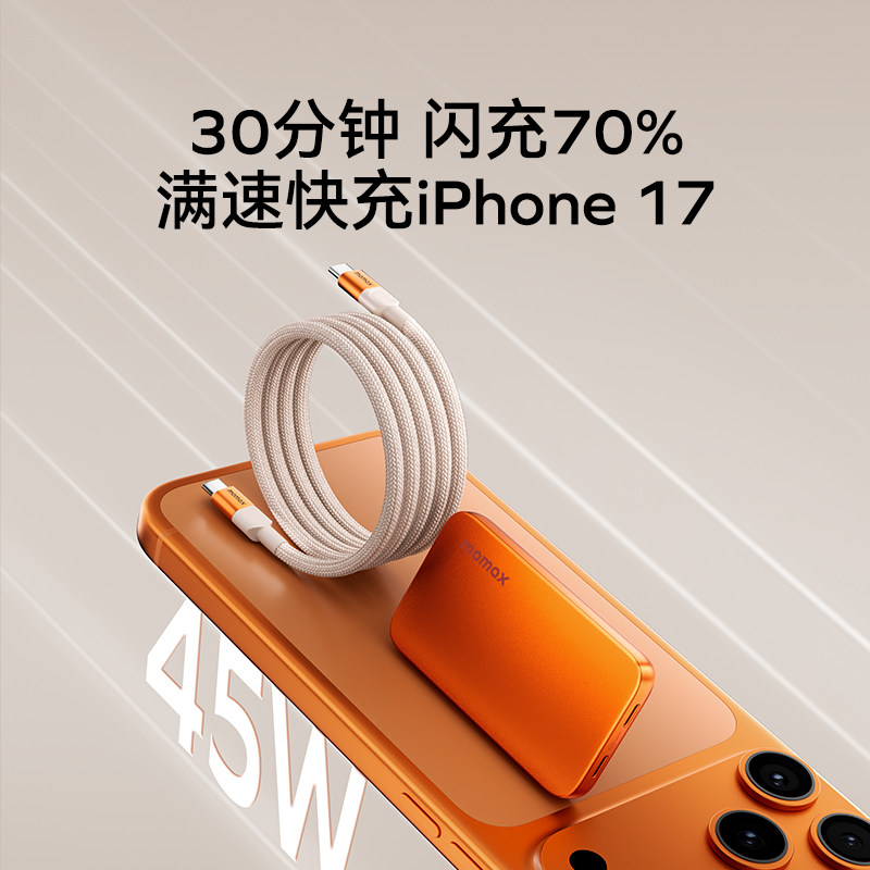 MOMAX摩米士氮化镓充电器45W超薄迷你快充充电头套装磁吸线适用于苹果iphone17promax