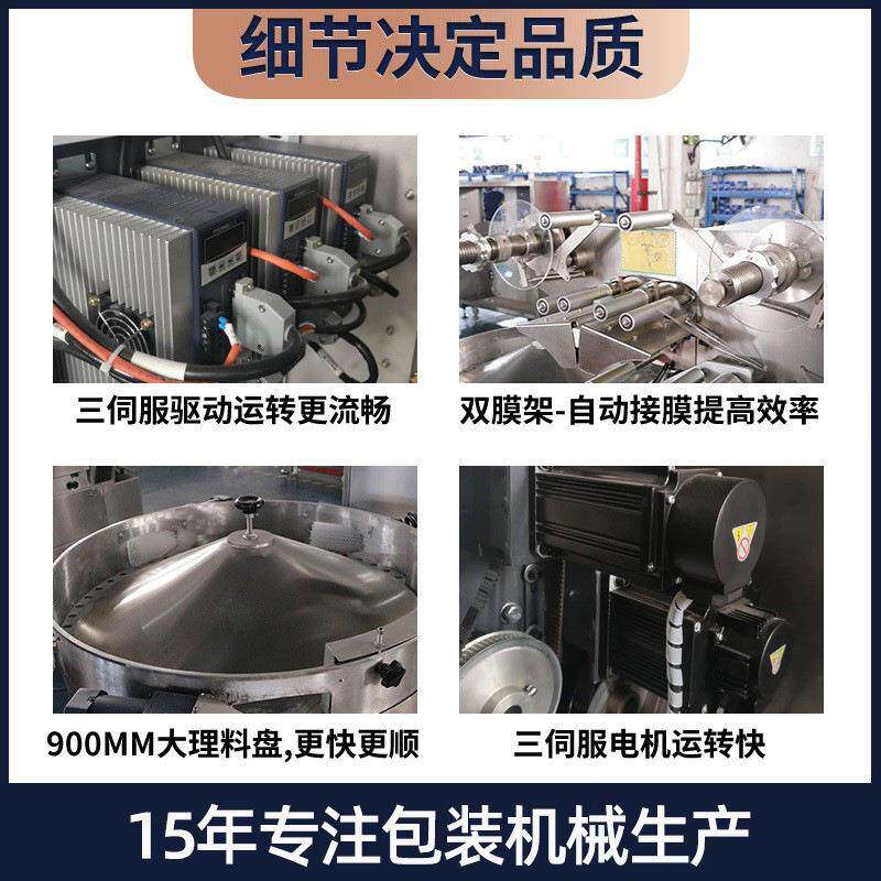 糖果包装机高速三伺服全自动理料奶枣棉花糖麻花巧克力枕式包装机