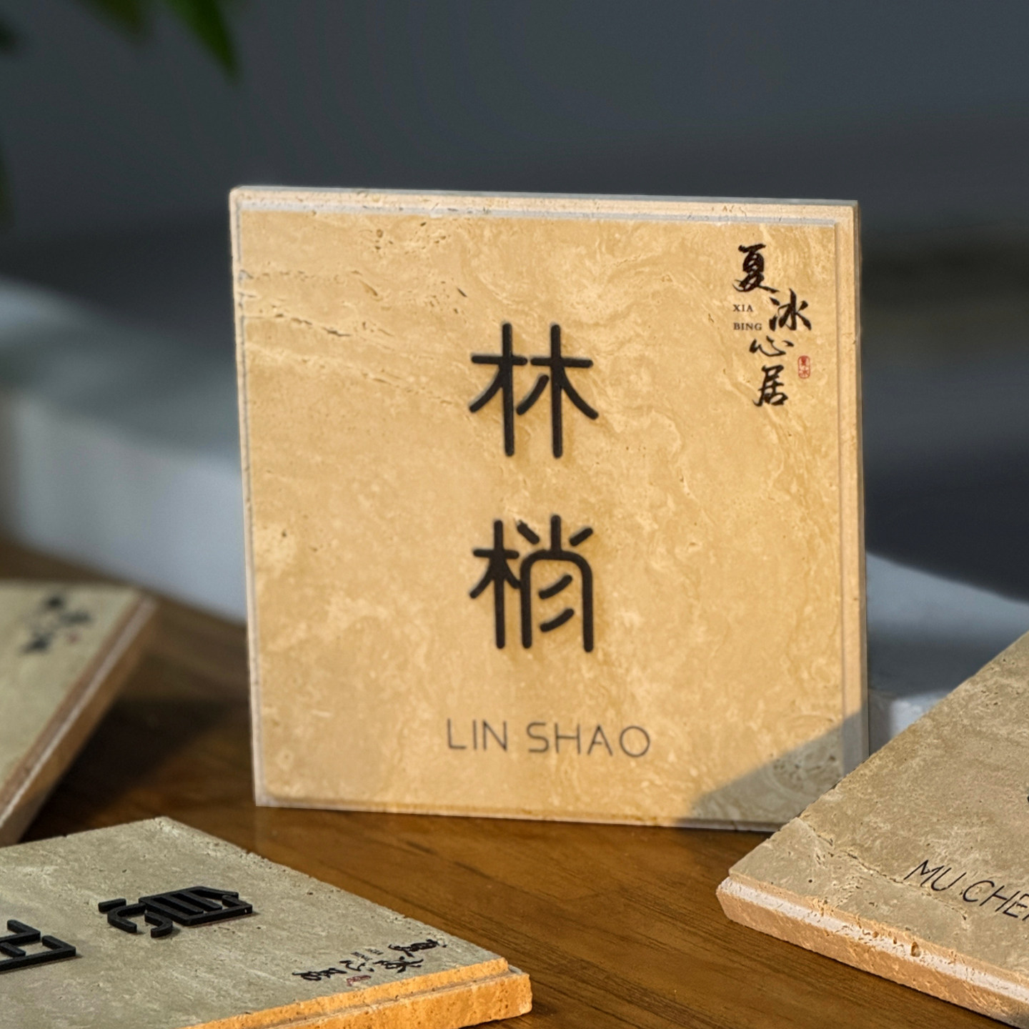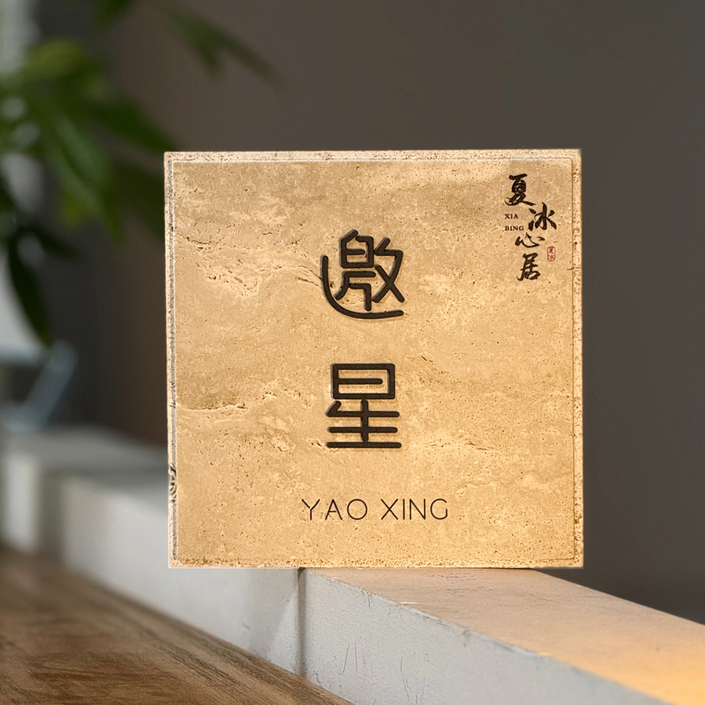 中式养发店洞石招牌理发店门口天然大理石门牌发廊美发屋石材灯牌