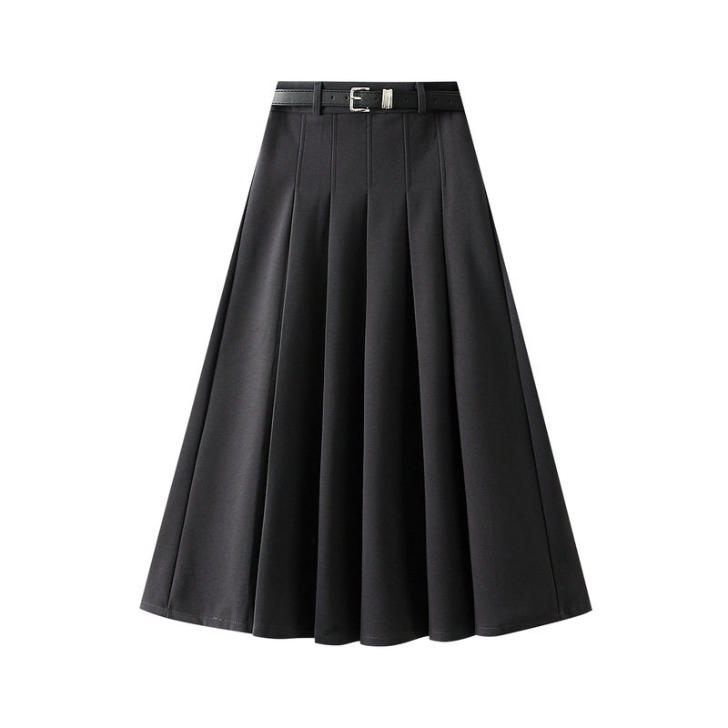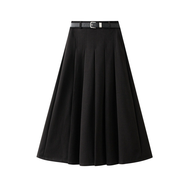 大洪官方玛丽亚秋冬新款高腰显瘦A字百褶半身裙显瘦半裙送腰带