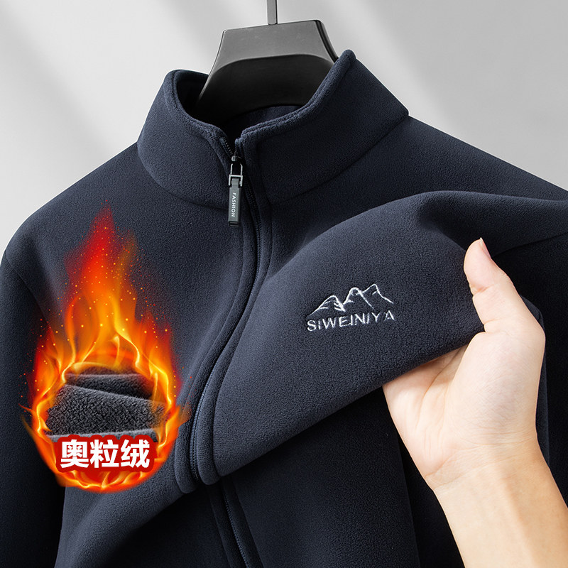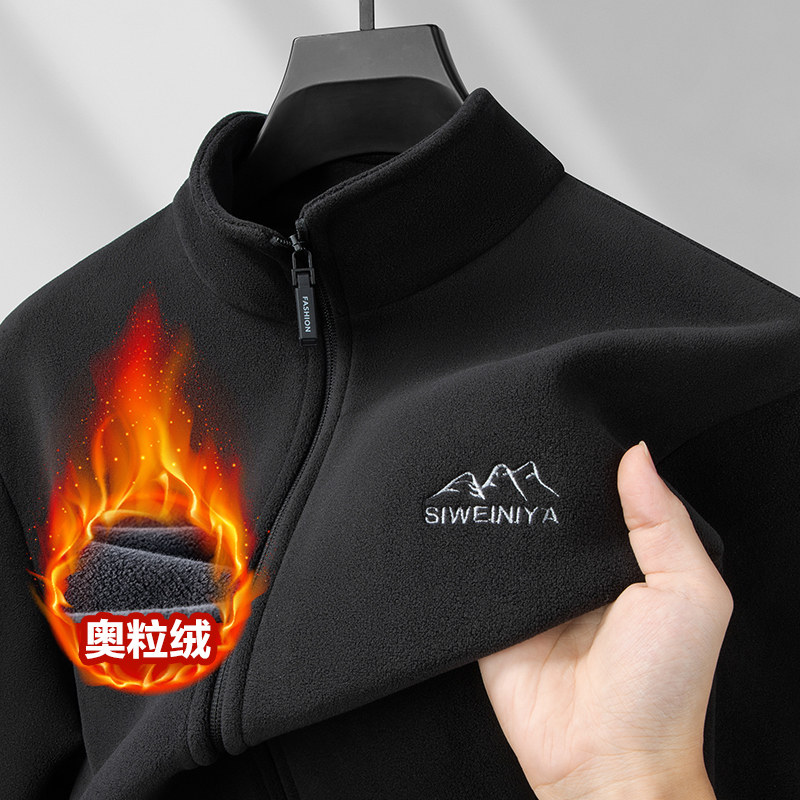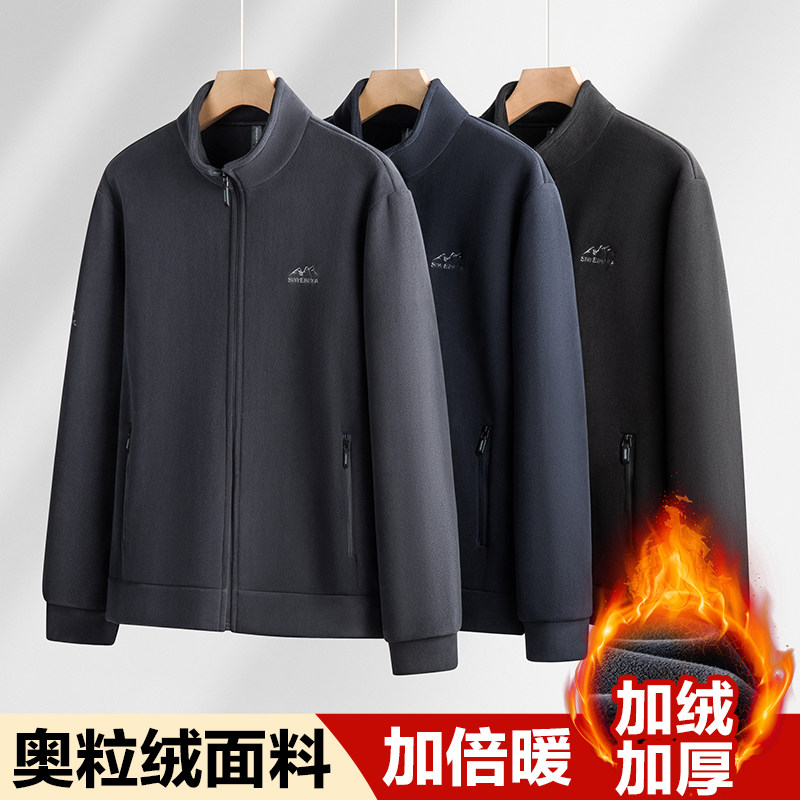 爸爸装德绒摇粒绒外套男冬季新款奥粒绒加绒加厚冲锋衣内胆抓绒衣