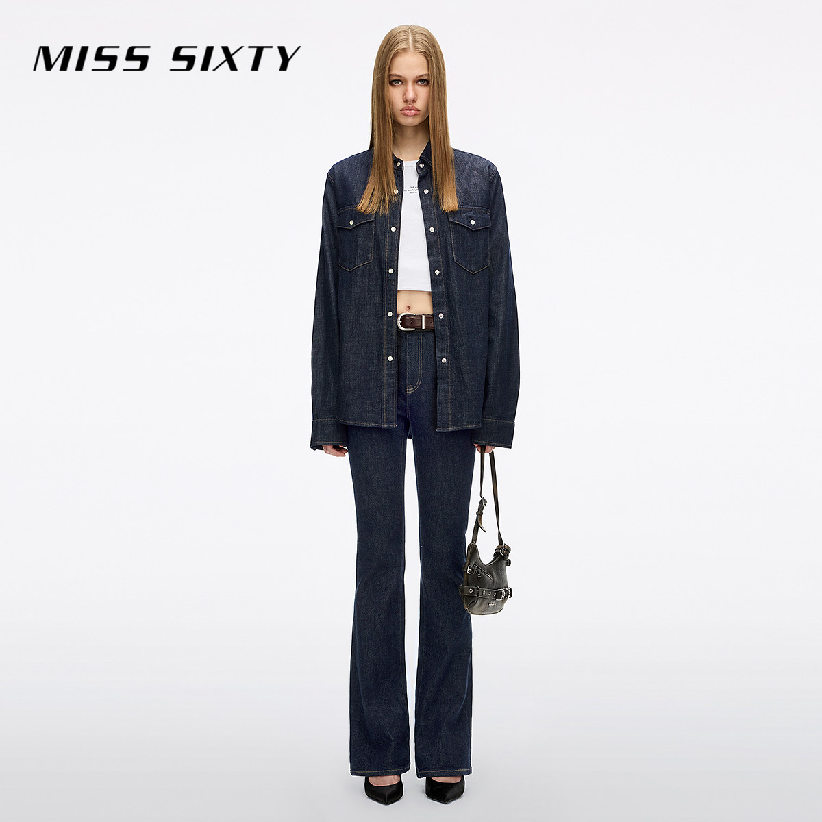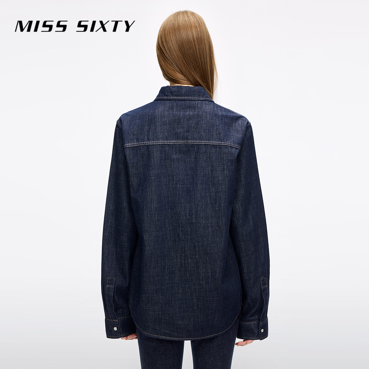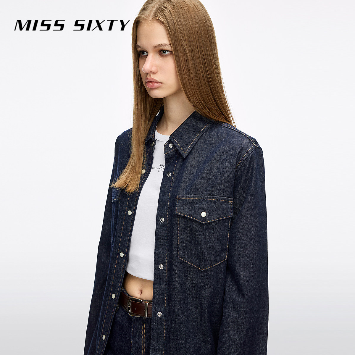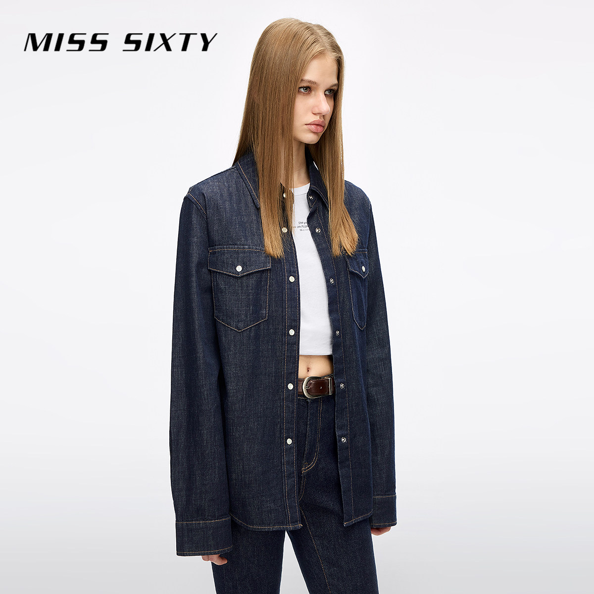 Miss Sixty2026春季新款牛仔衬衫女翻领工装口袋单排扣宽松中长款