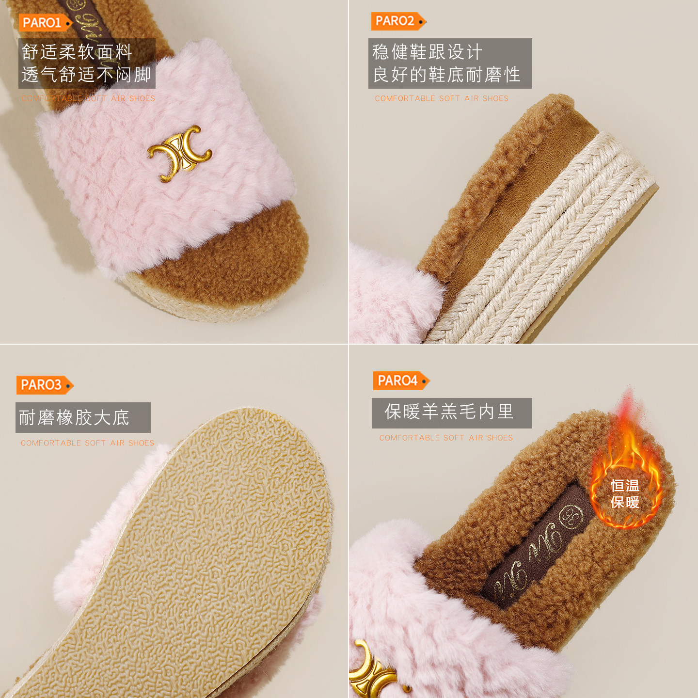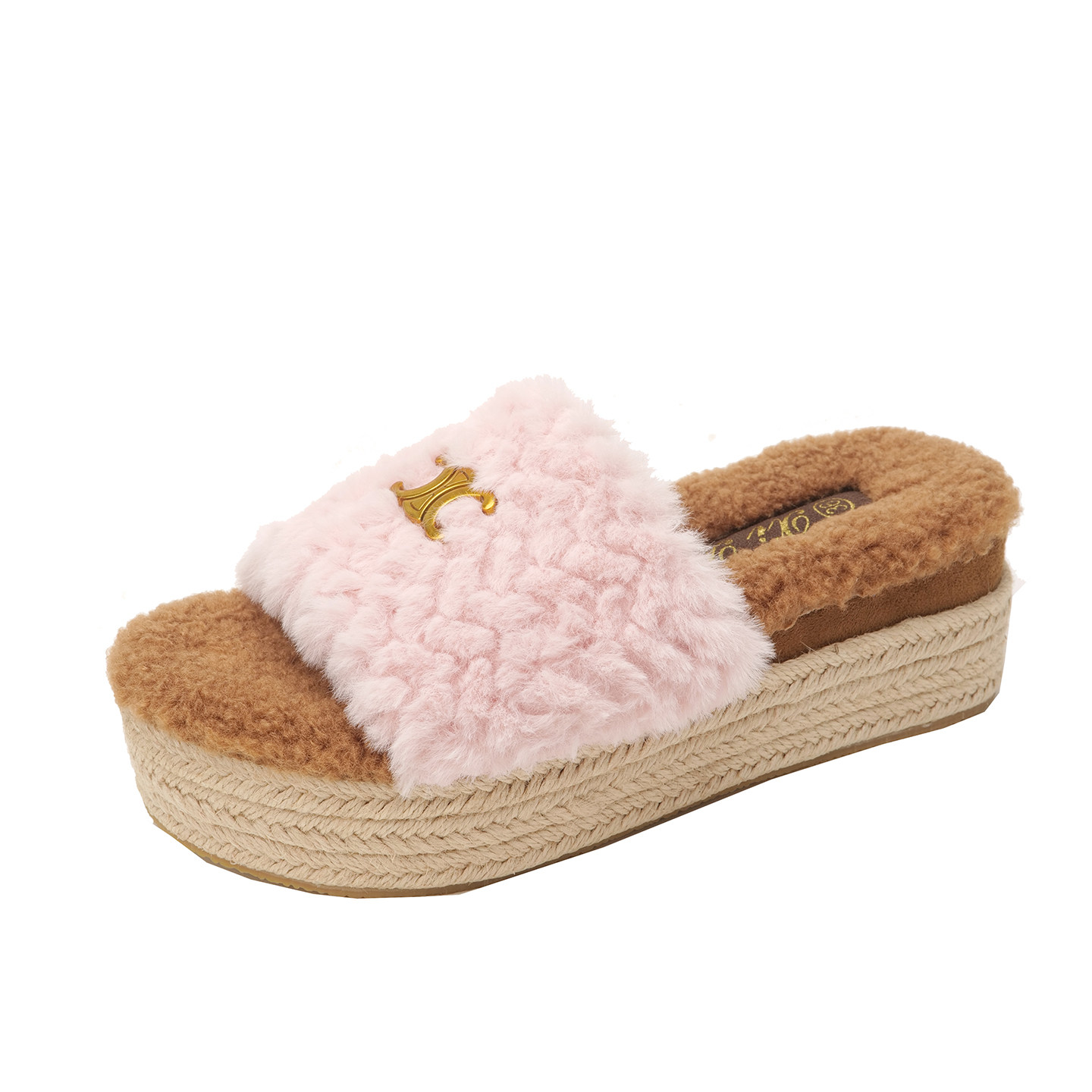 粉色厚底毛毛拖鞋女外穿2025新款韩版松糕坡跟增高懒人休闲一字拖