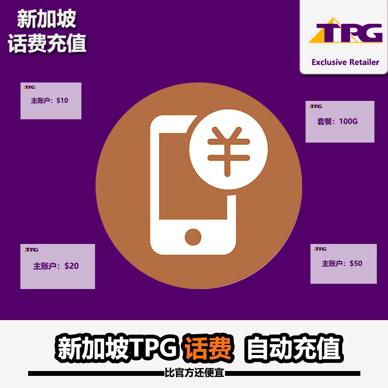 TPG话费充值,系统反应慢一般24小时才能到帐,太急不要拍 一旦下单,系统会进入排队状态无法取消,晚上排队慢 产品为自动充值,境外号码请填写新加坡号码,系统会自动识别65区号空格 充值前请务必关闭移动数据,因数据未关闭导致余额被扣光事件容易发生 去领券购买 ->