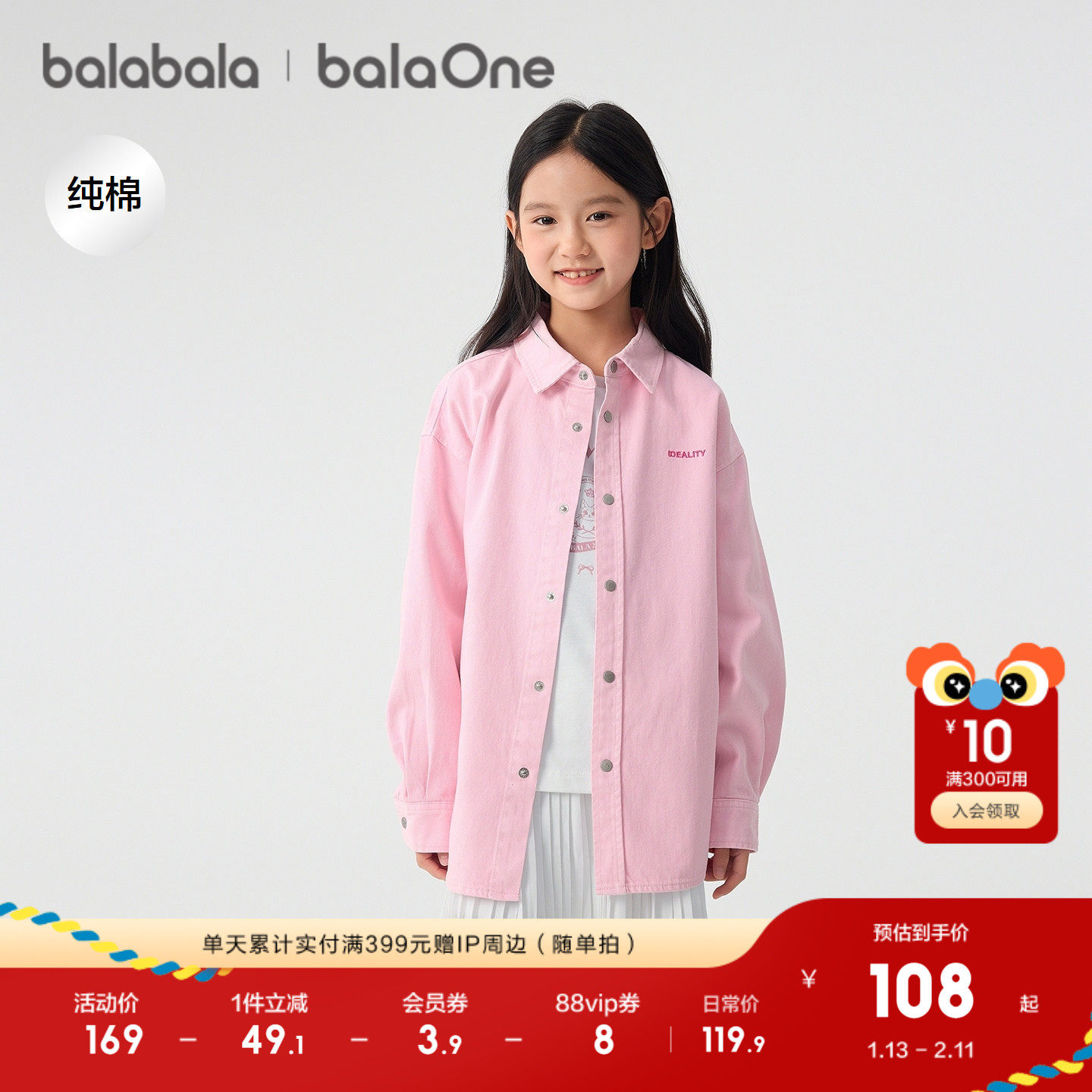 巴拉巴拉童装儿童长袖衬衫女童男童2026新款春装牛仔上衣纯棉舒适