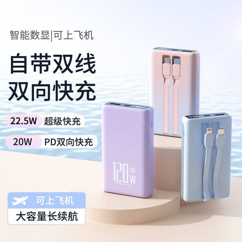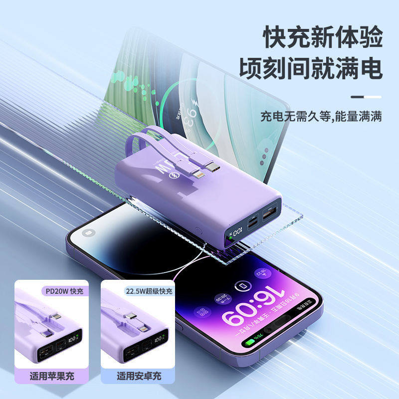 【3C认证】新款充电宝20000毫安超级快充自带线超大容量超薄小巧便携正品PD20W闪充移动电源适用华为苹果专用