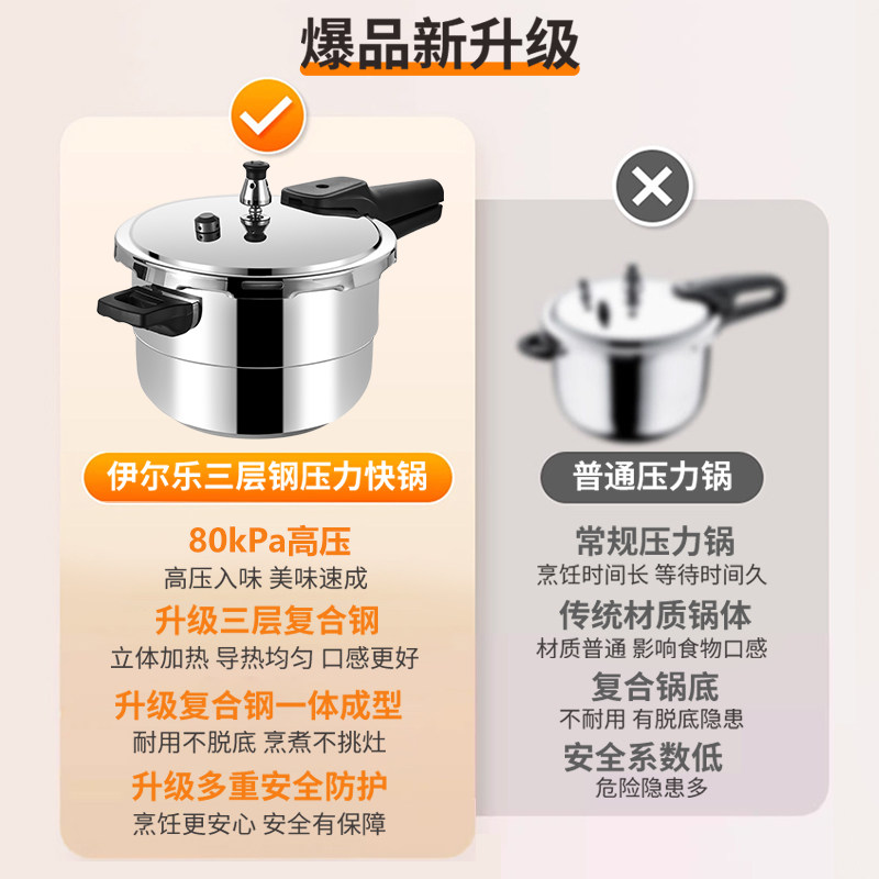 伊尔乐304不锈钢高压锅家用防爆燃气电磁炉通用压力锅安全