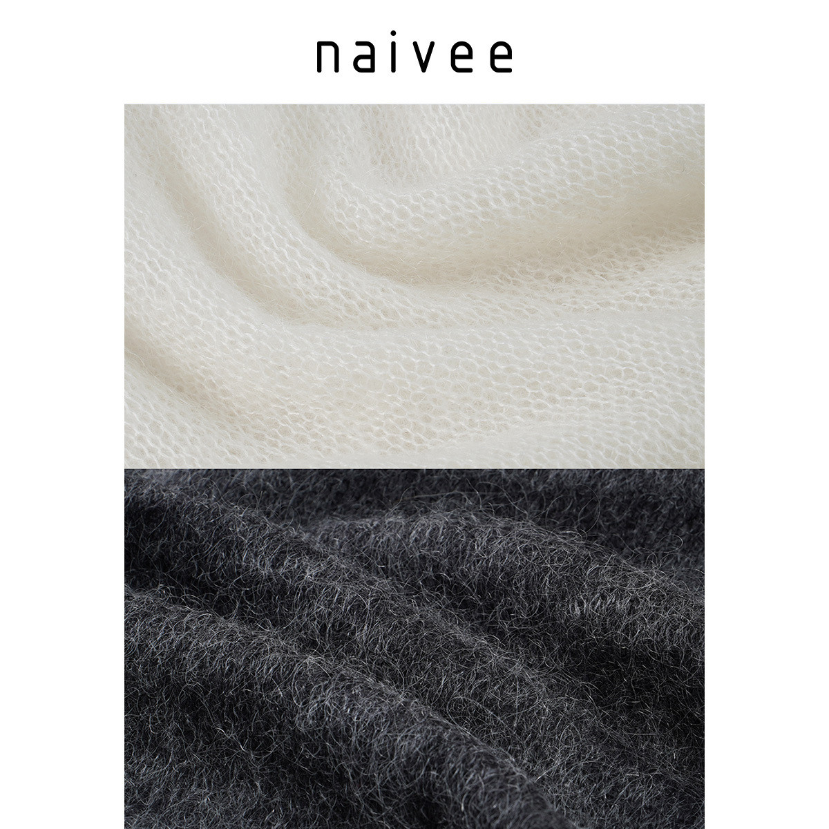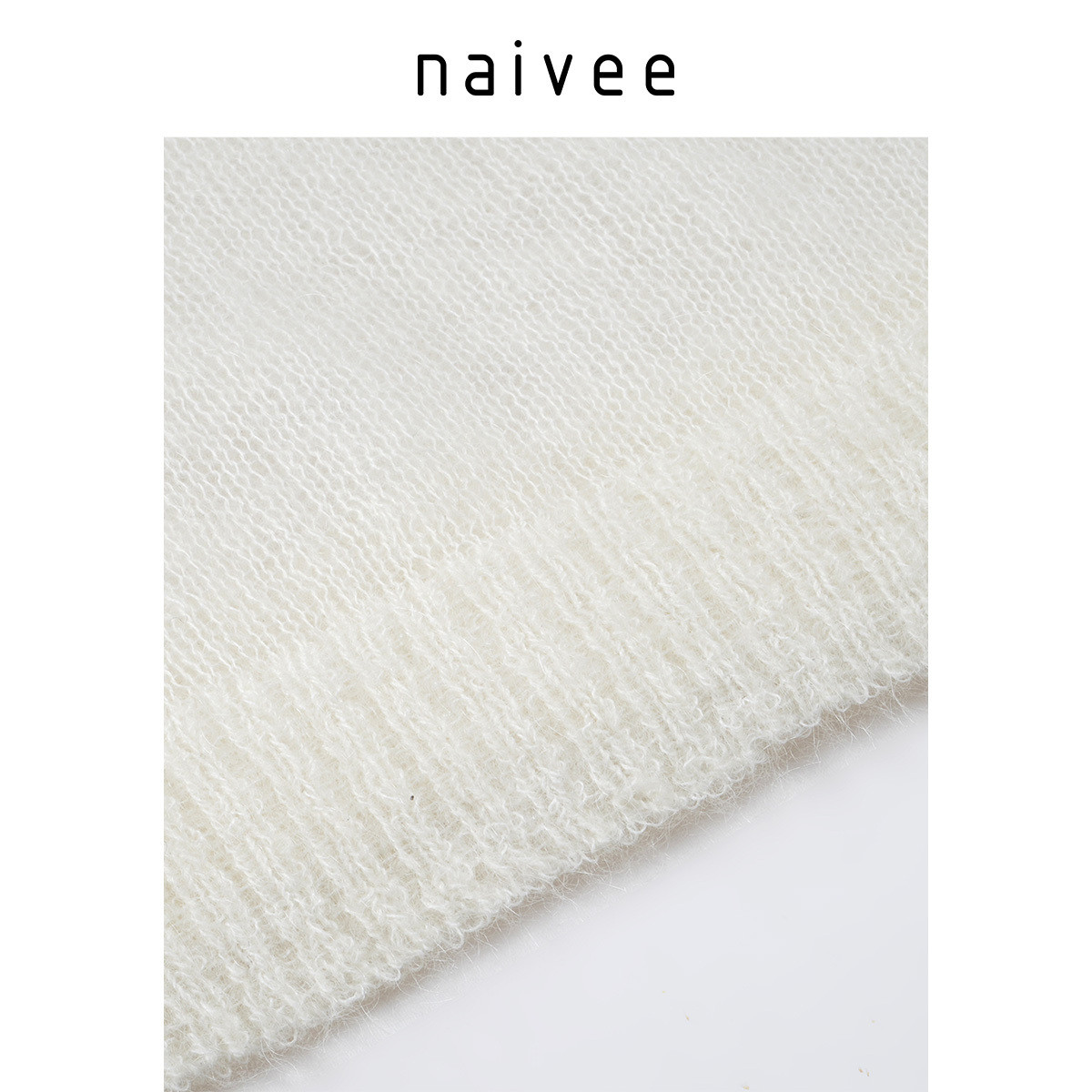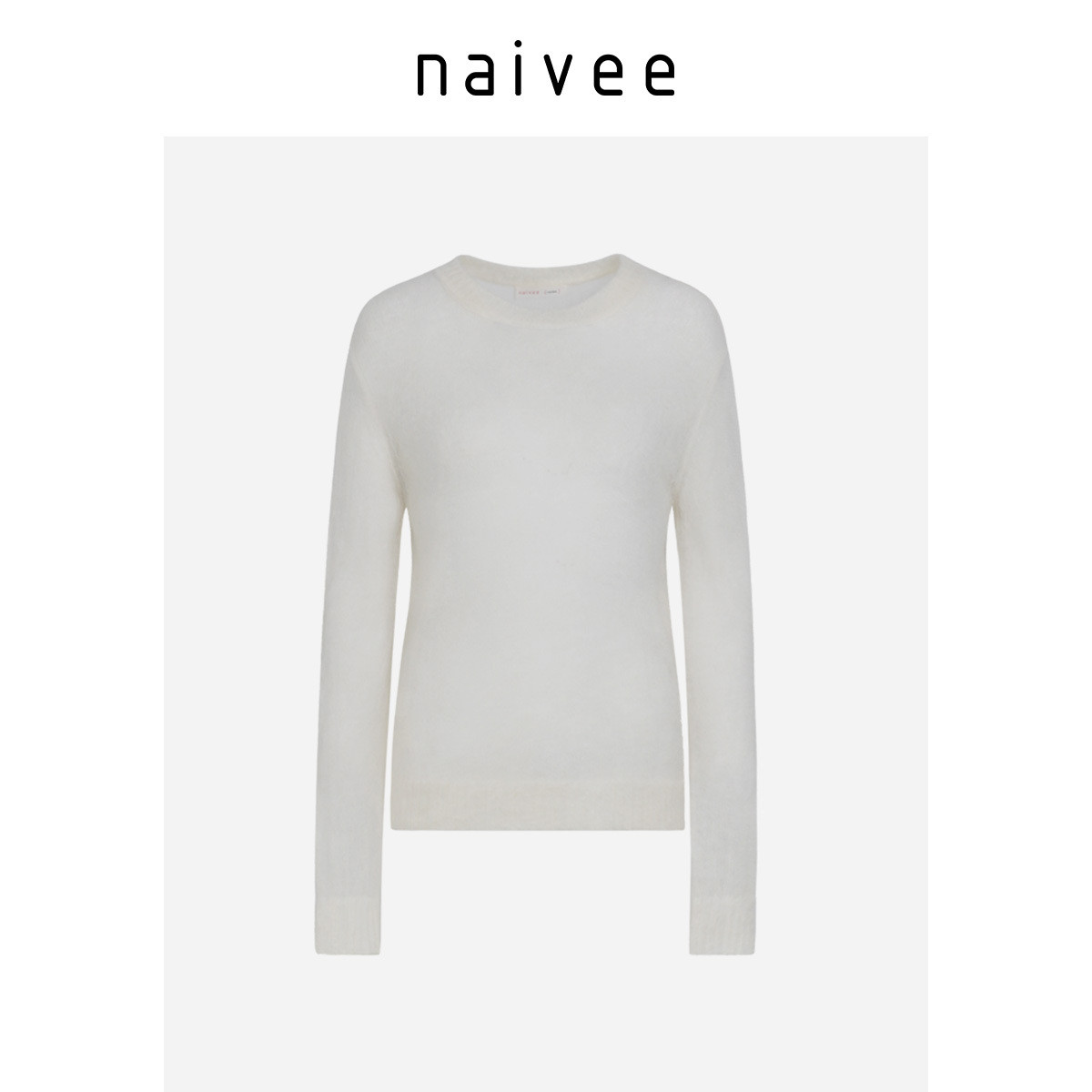 【绵羊毛马海毛30%】naivee纳薇秋针织衫套头毛衣黑白