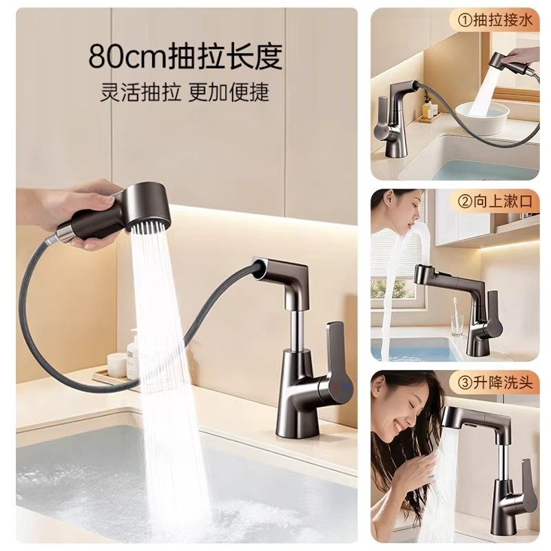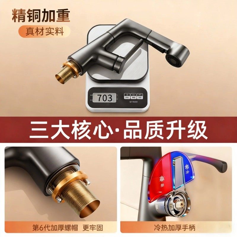 洗脸盆水龙头洗手盆抽拉冷热两用卫生间面盆浴室柜台盆家用多功能