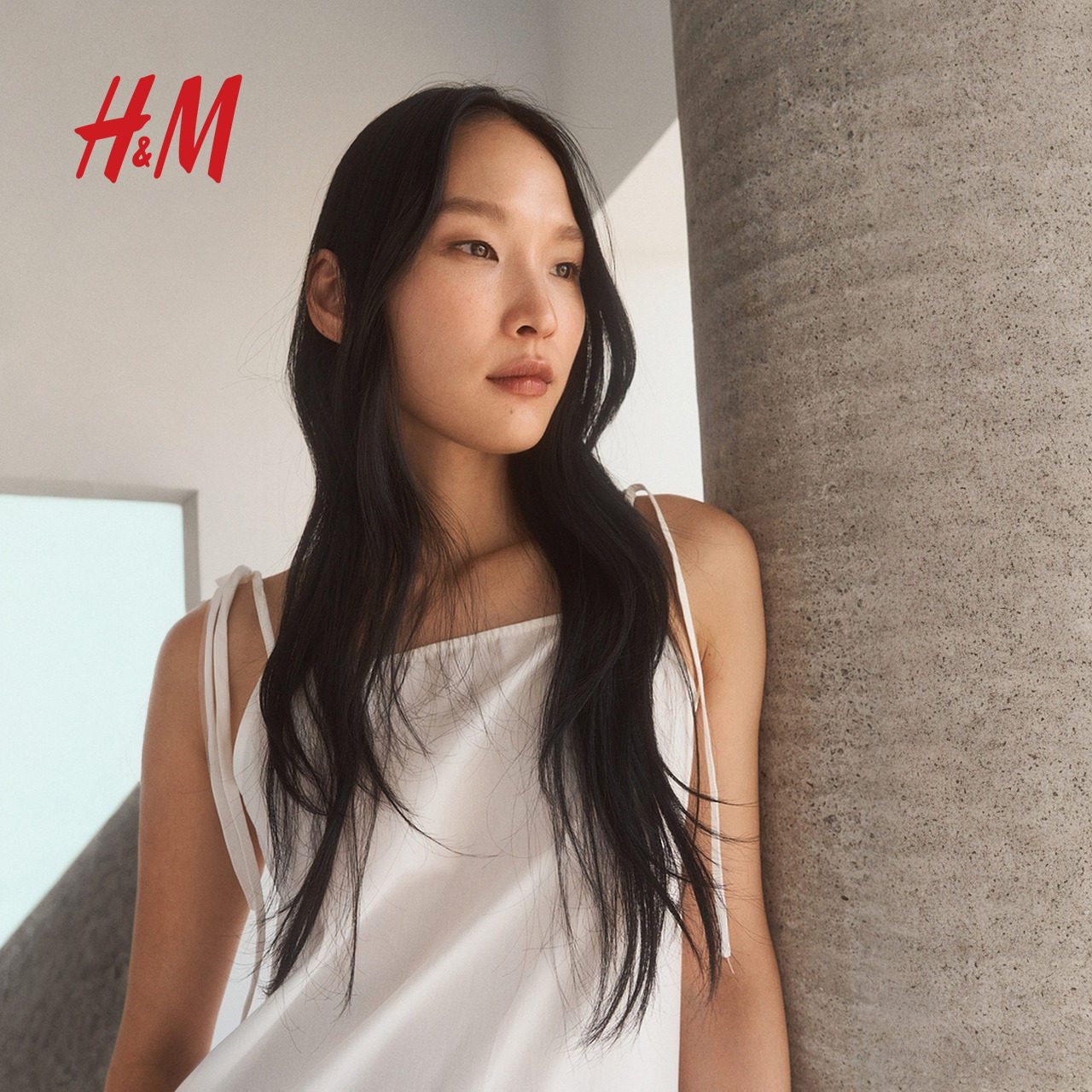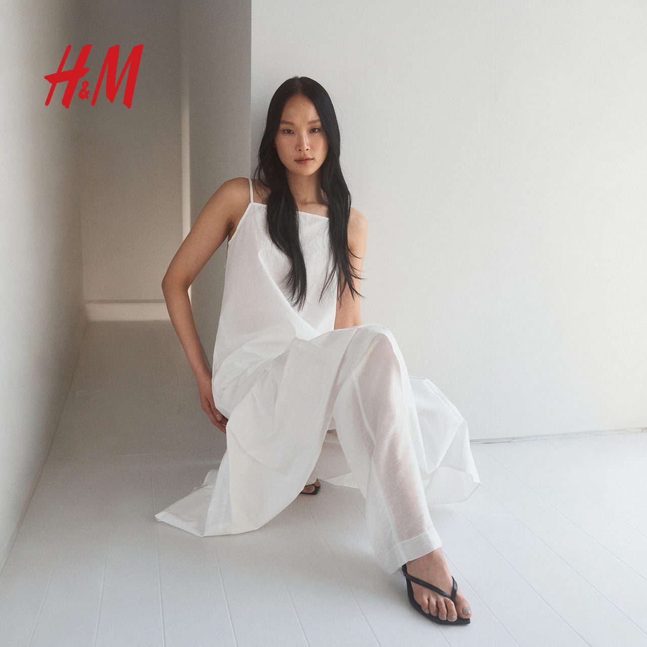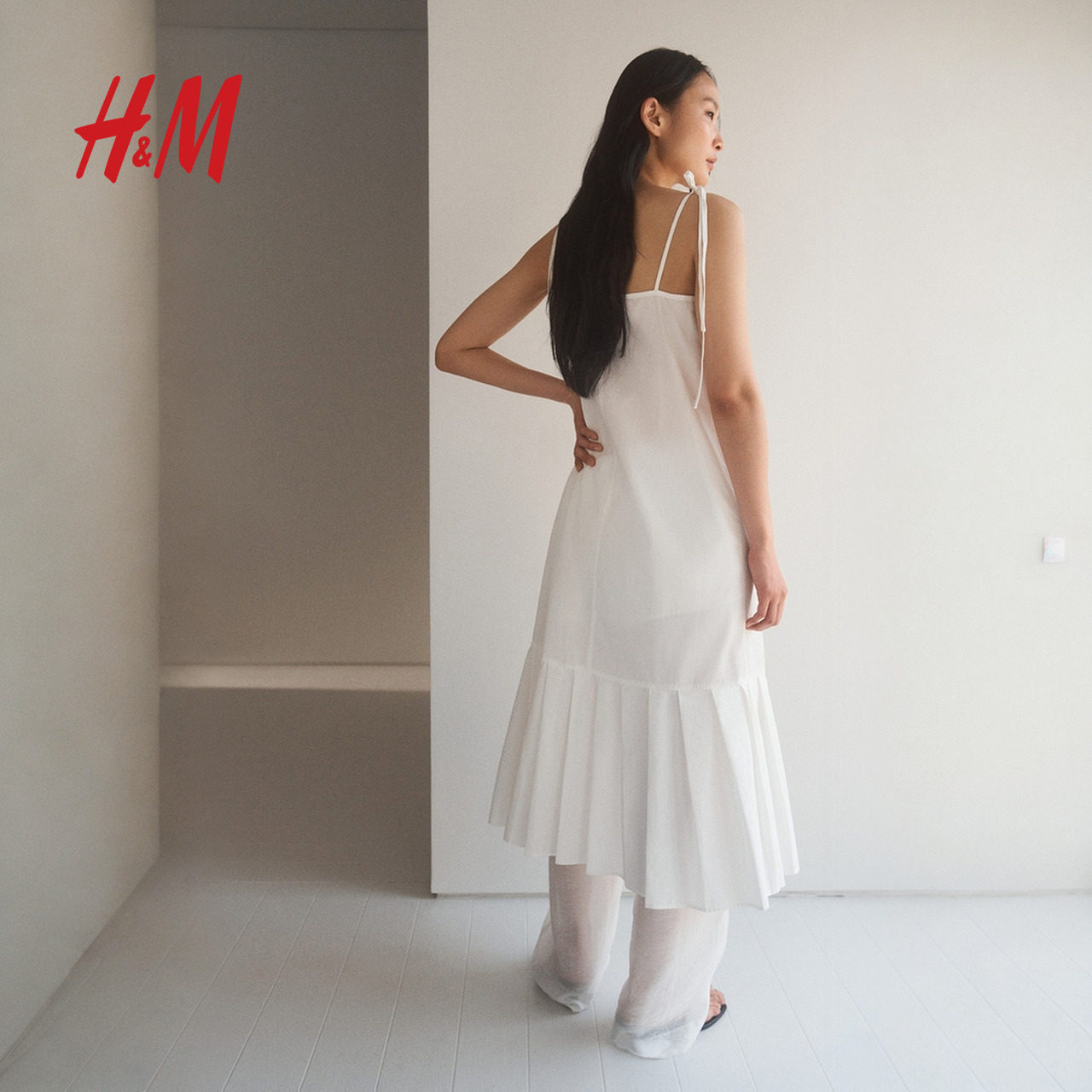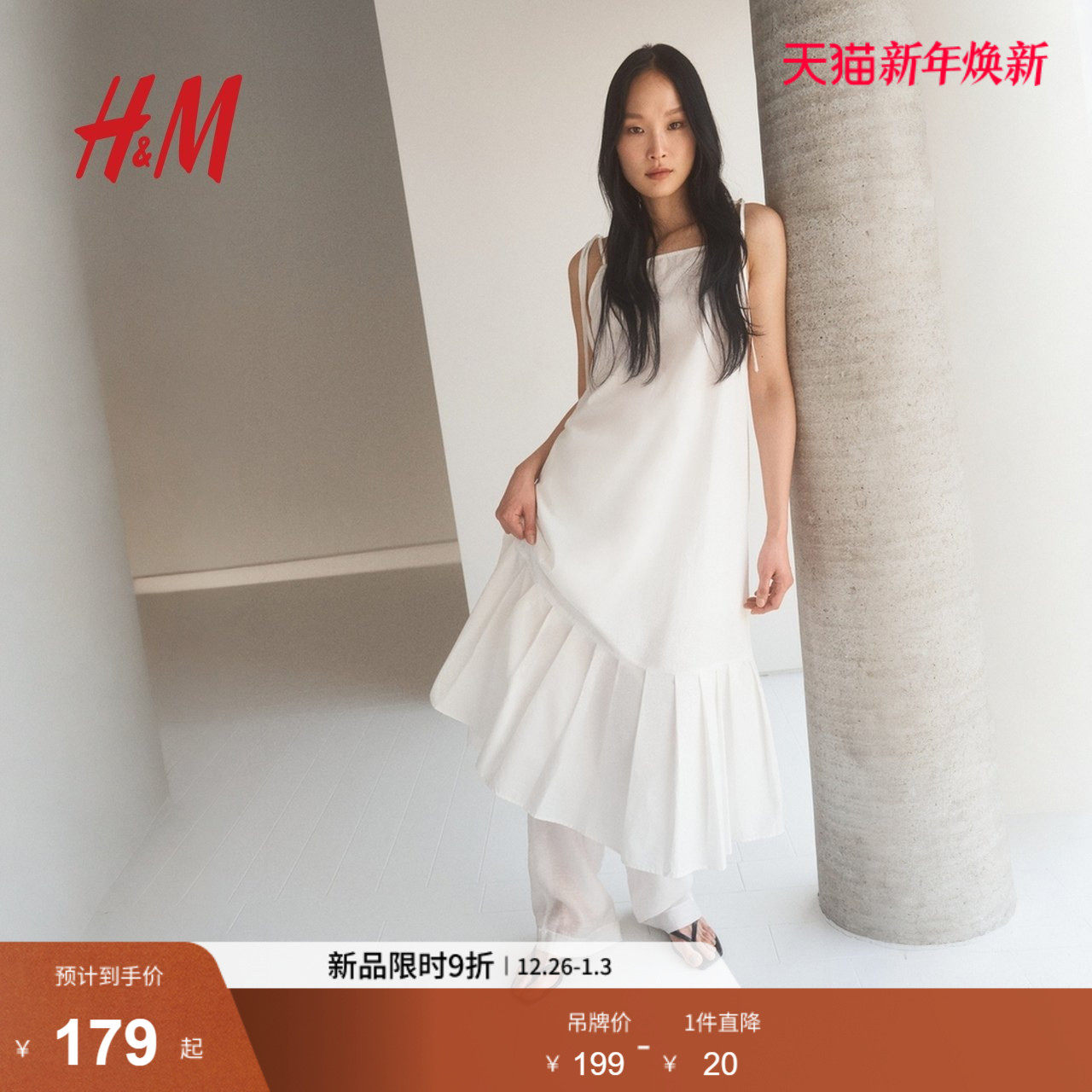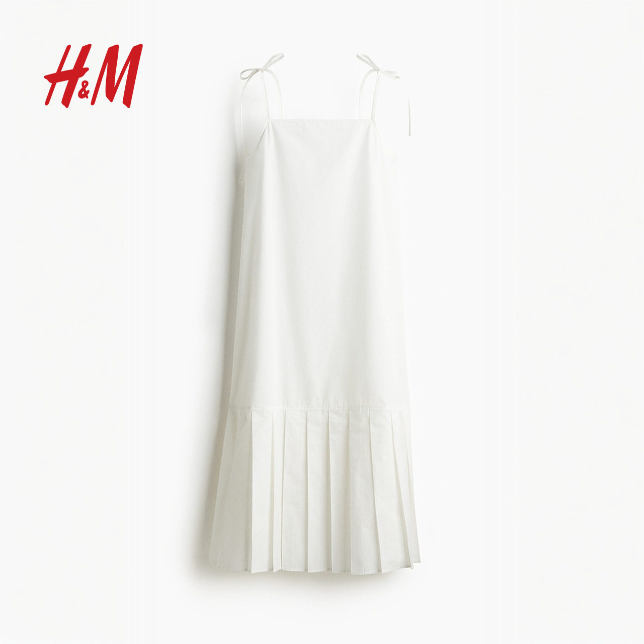 HM女装背心吊带连衣裙2025冬季新款方领A字府绸吊带连身裙1296189